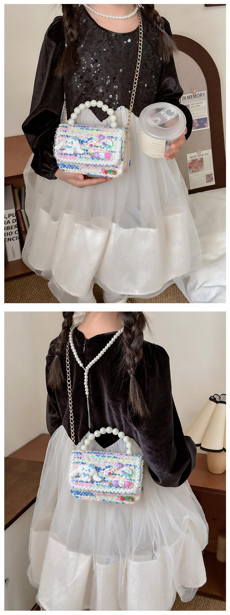 새로운 만화 어린이 가방 패션 진주 공주 핸드백 체인 소녀 어깨 크로스 바디 작은 가방 샤넬 스타일