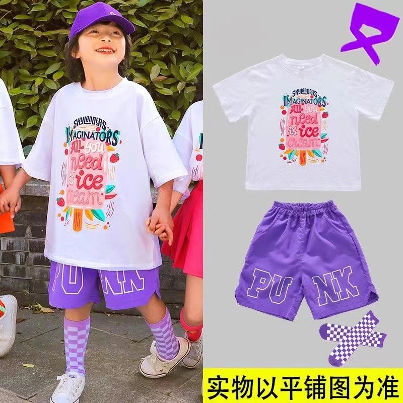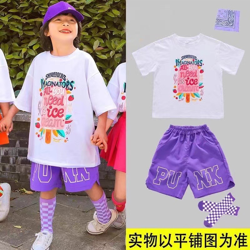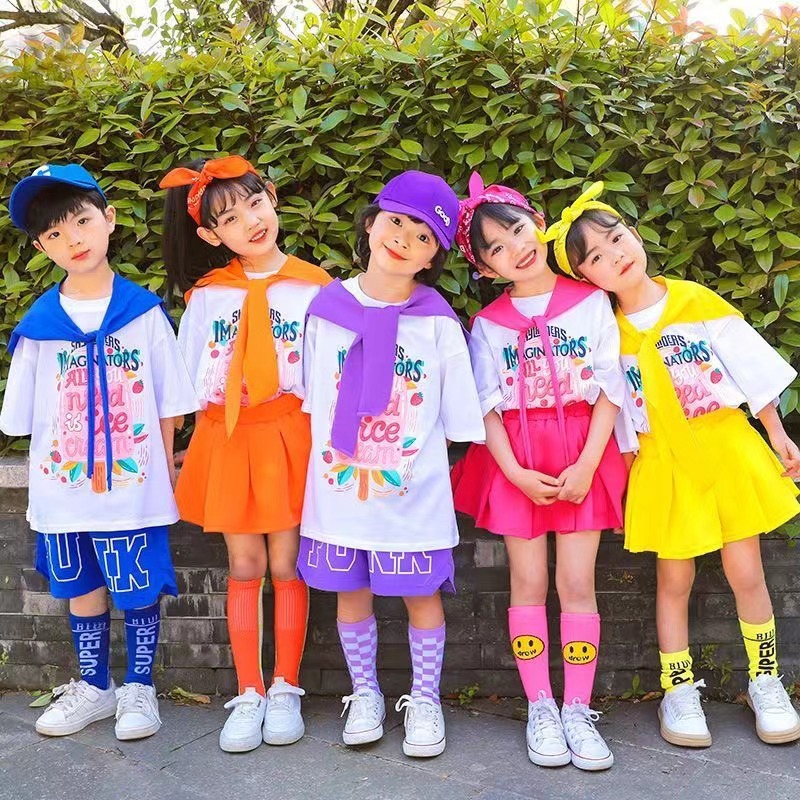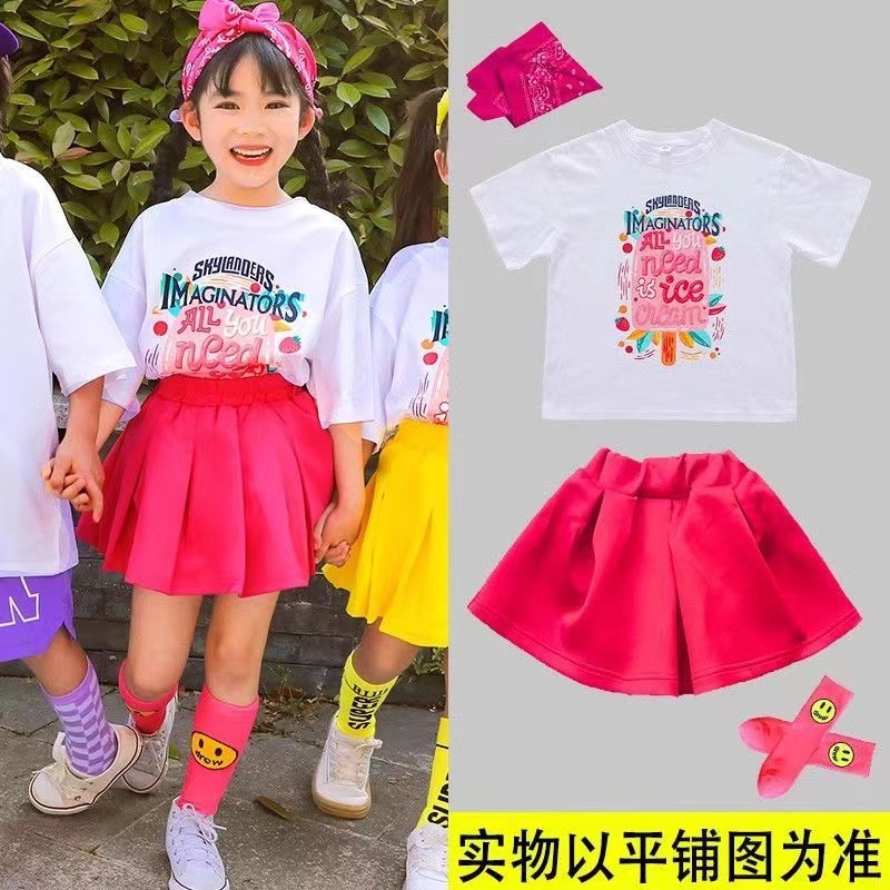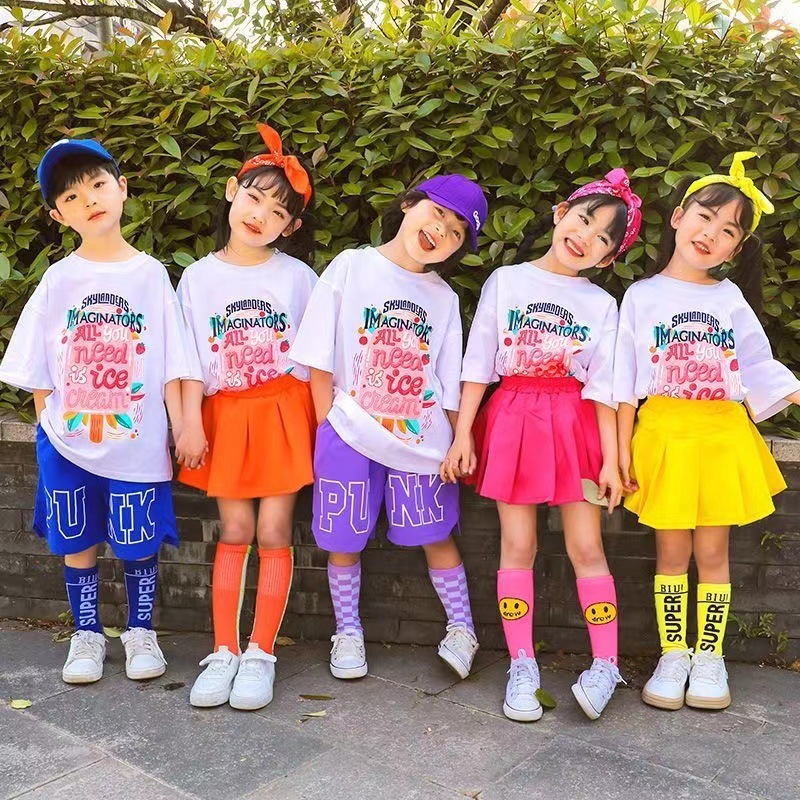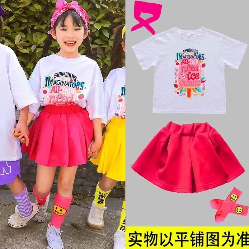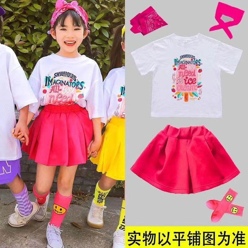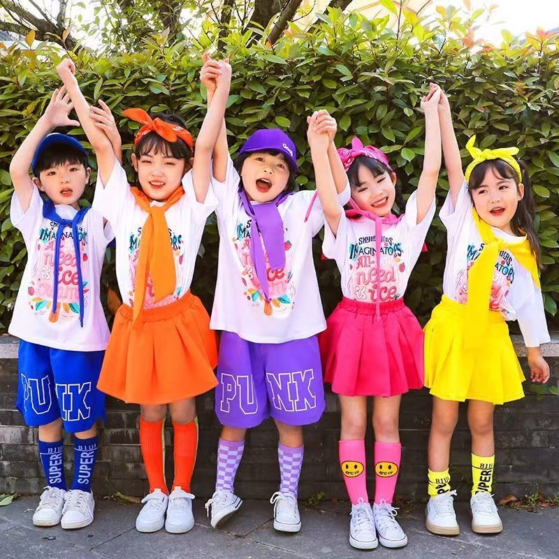 어린이 공연 세트 초등학생 도파민 수업 세트 치어리더 공연 세트 컬러 반팔 반바지 여름 세트