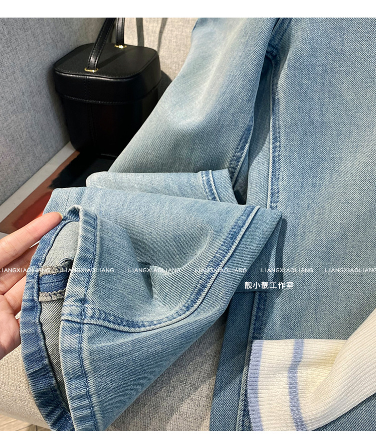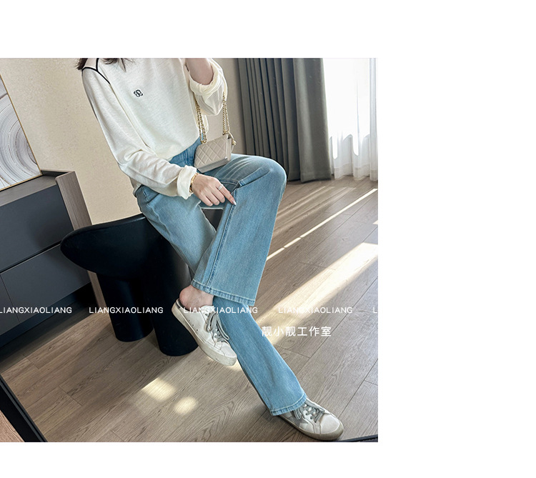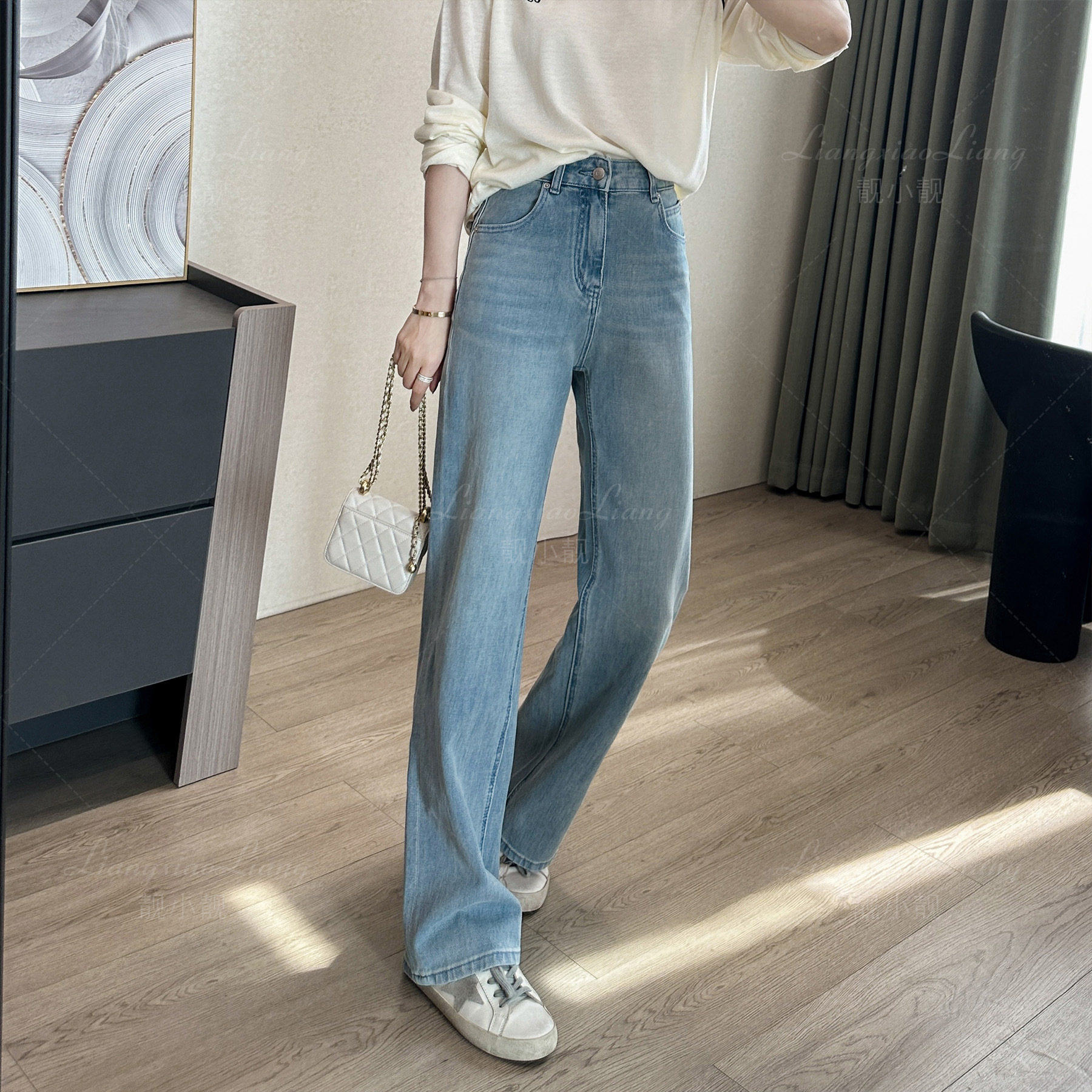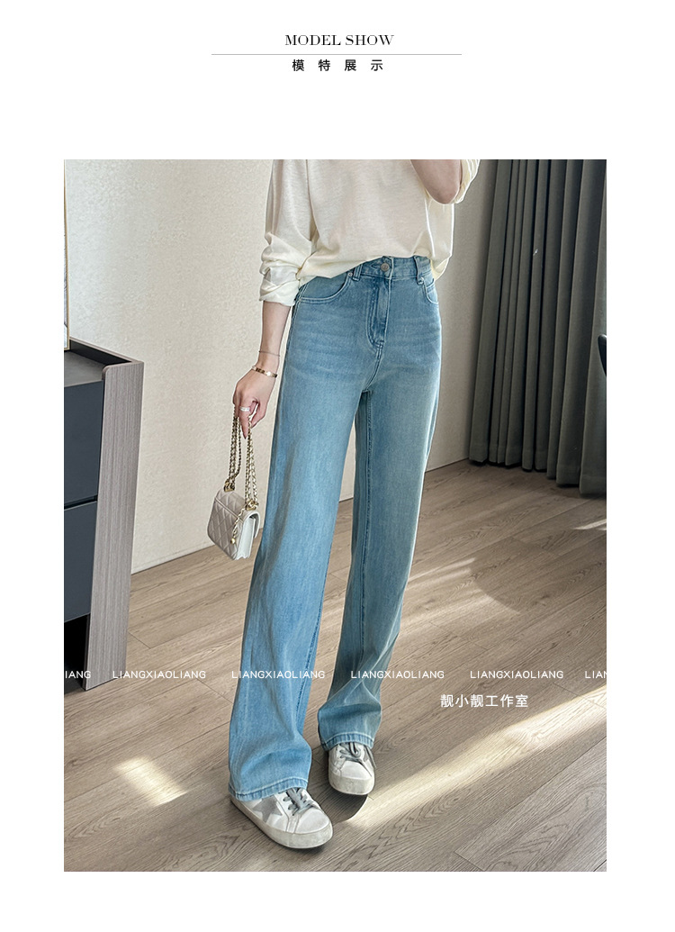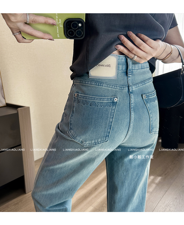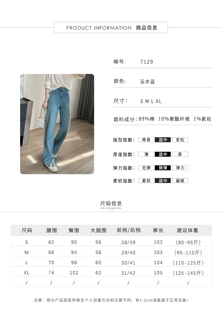 마을 상점 돈에 머물러라! 독창성 세척 구름 물 블루 하이 엔드 4 면 탄성 청바지 여성의 좁은 넓은 다리 바지 스트레이트 다리 바지스토어 가기