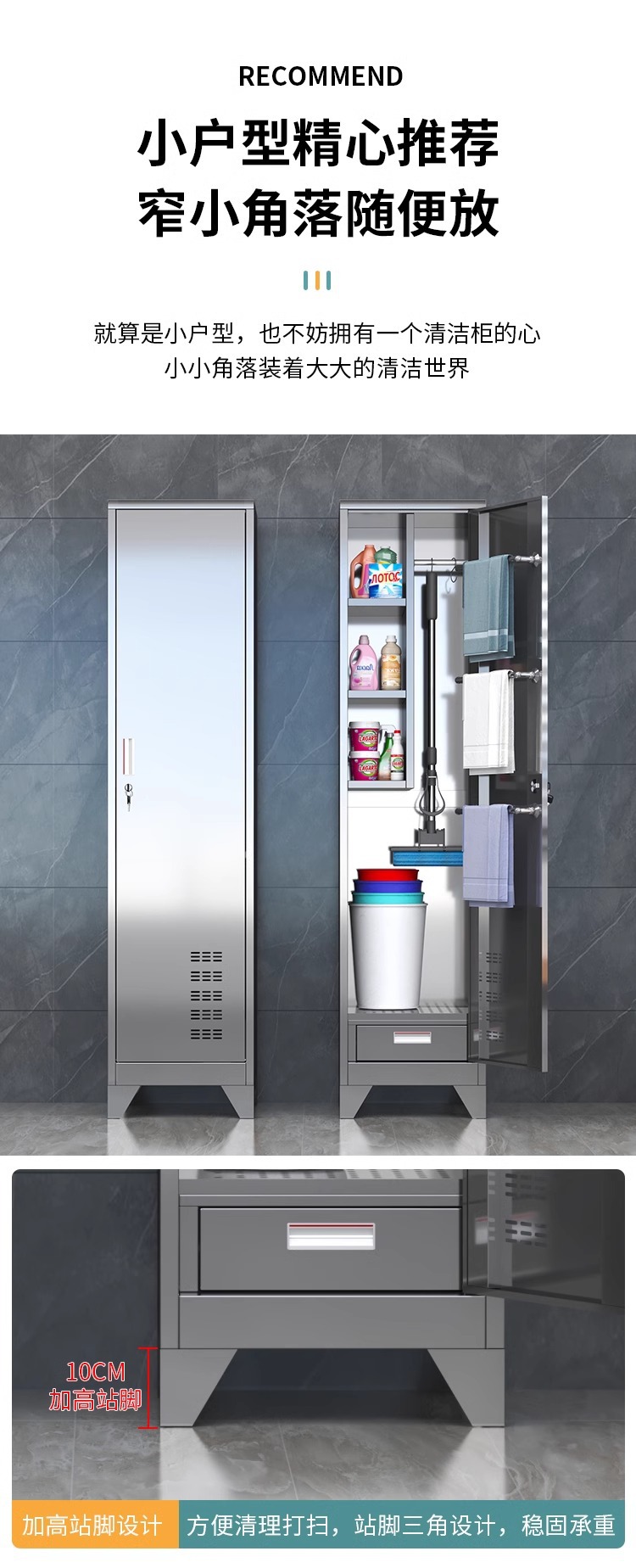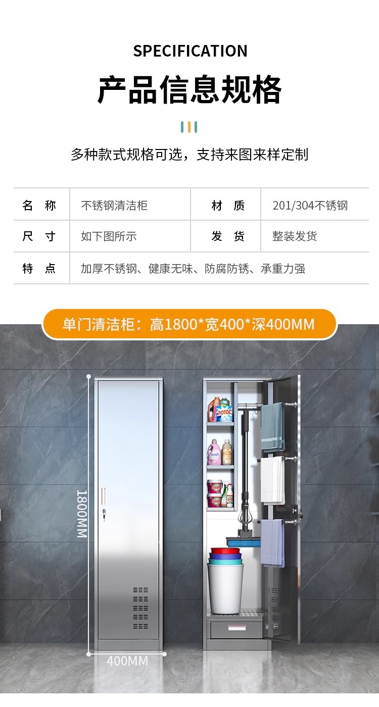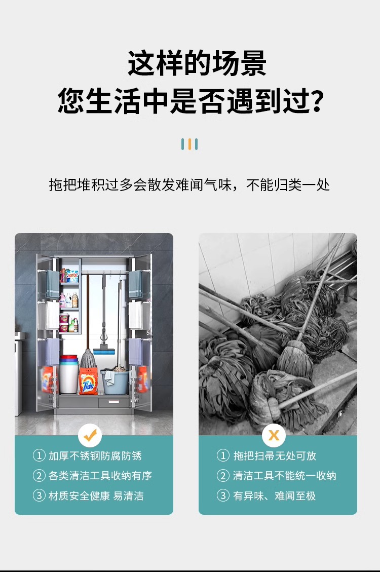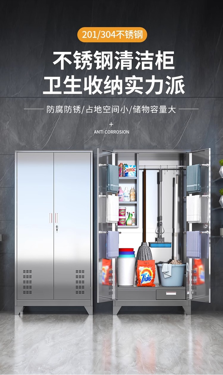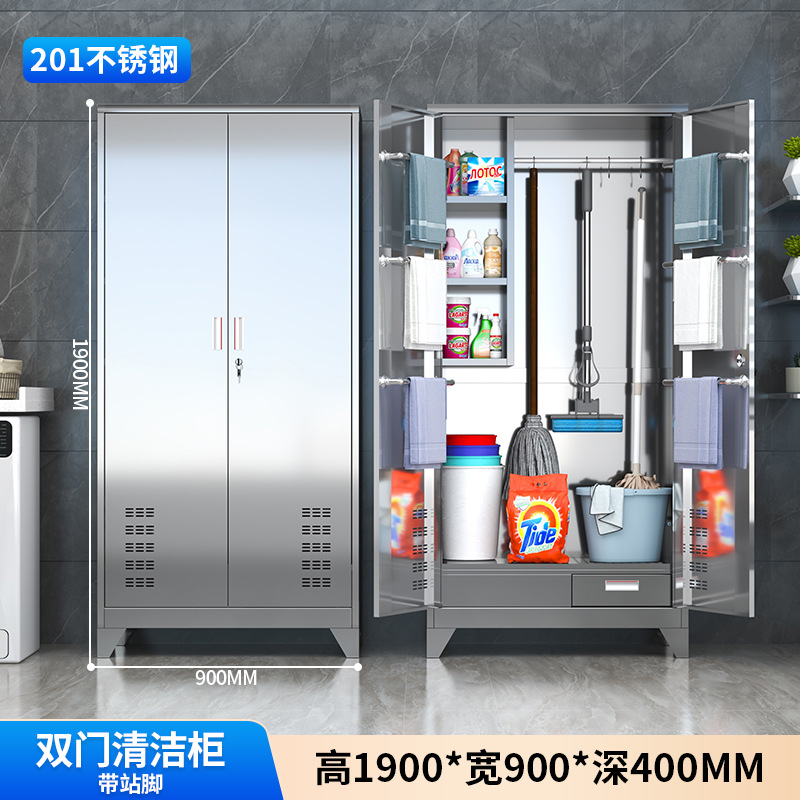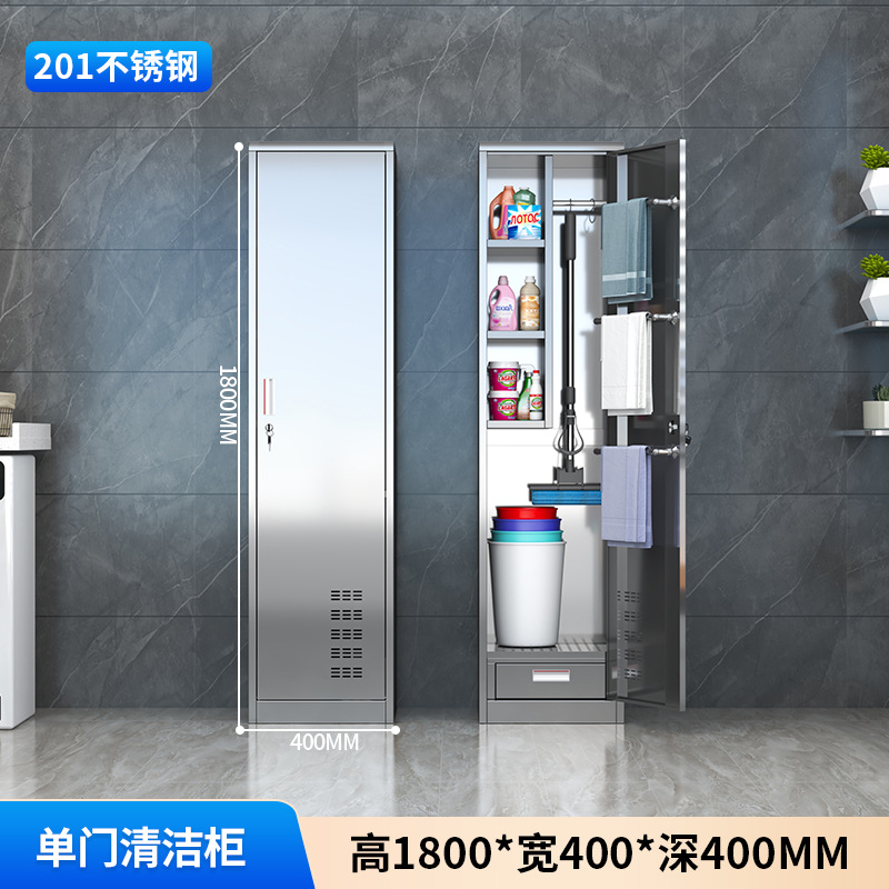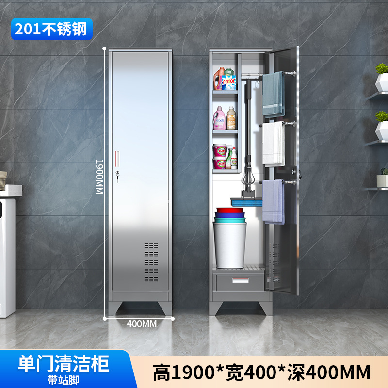 스테인레스 스틸 청소 도구 보관 캐비닛 교실 걸레 병원 걸레 청소 캐비닛 홈 발코니 방수 보관 캐비닛스토어 가기