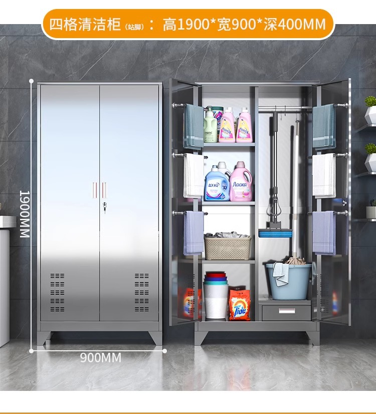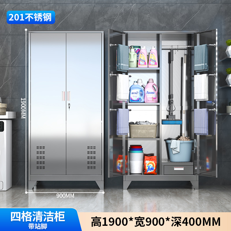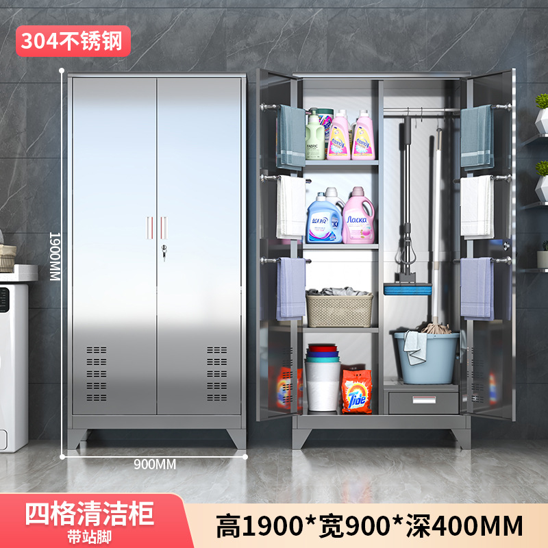 • 304 4칸 이중 도어 청소 캐비닛(발 포함)
