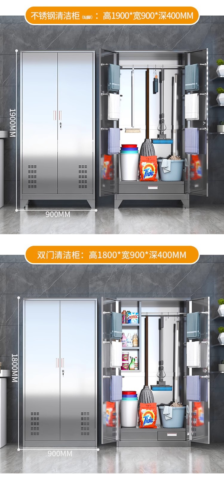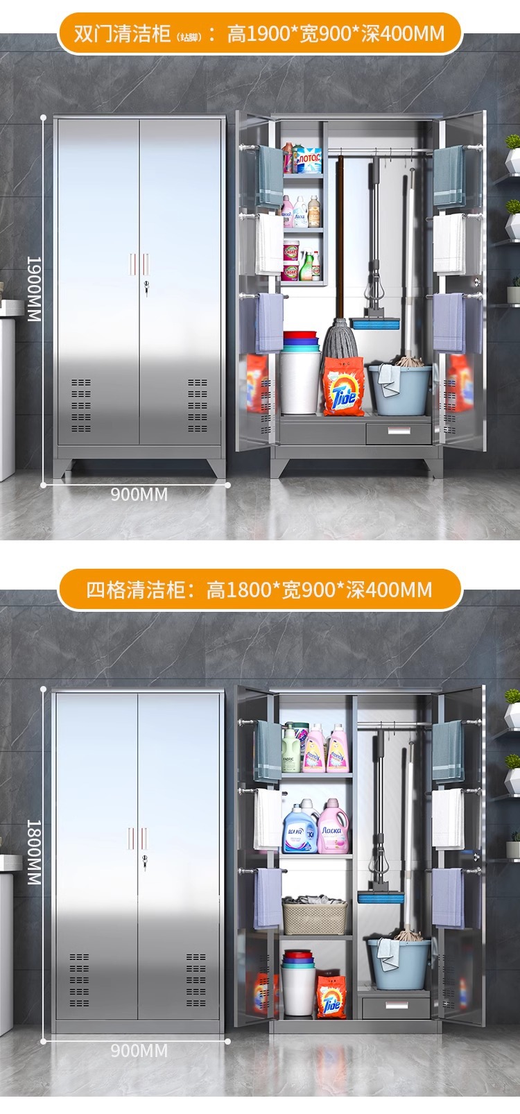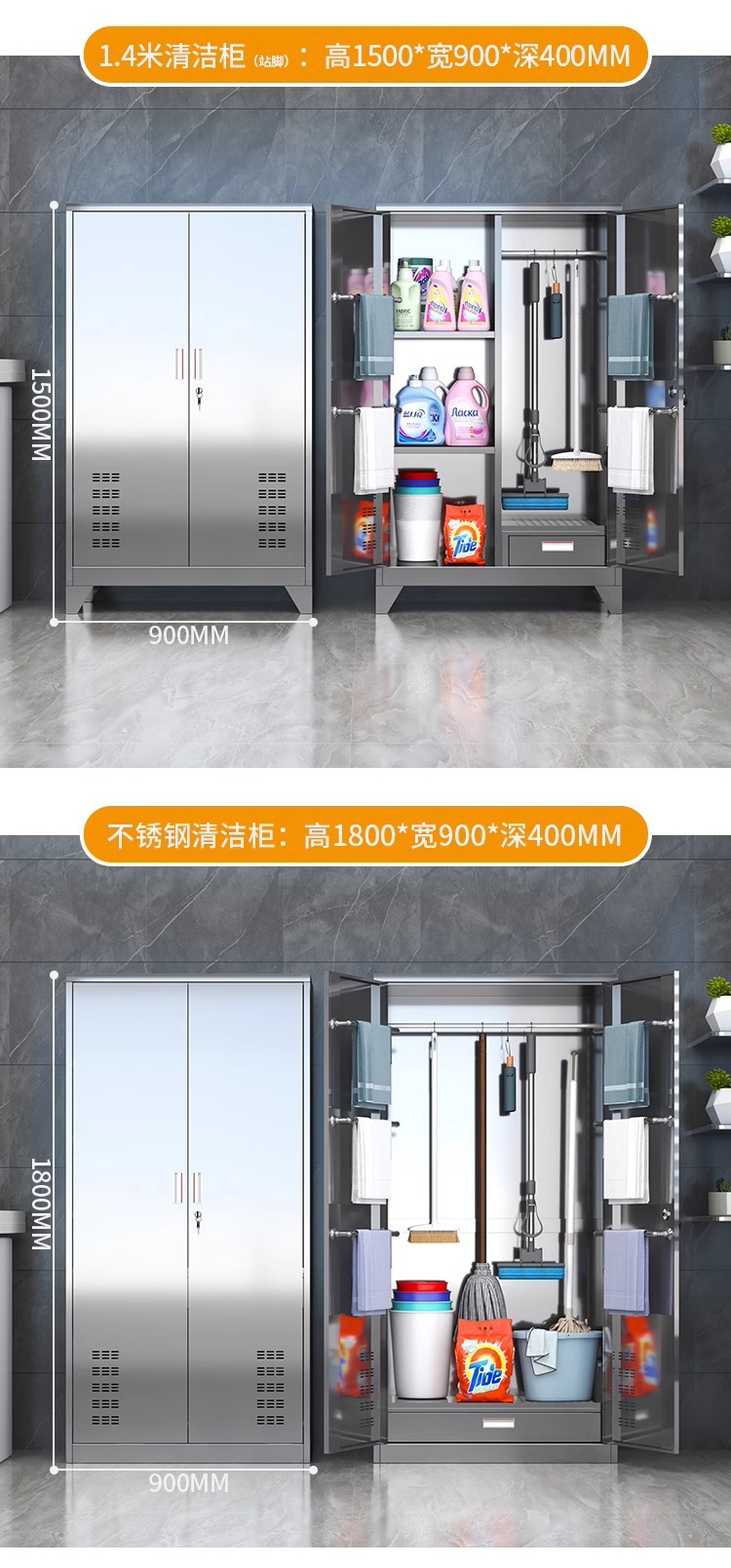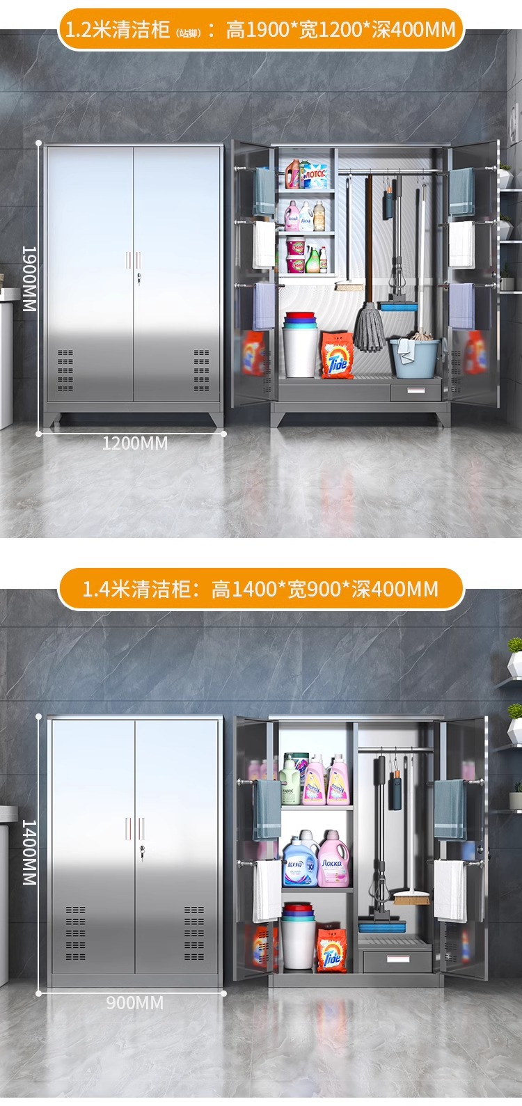 • 304 이중 도어 1.4m 와이드 청소 캐비닛