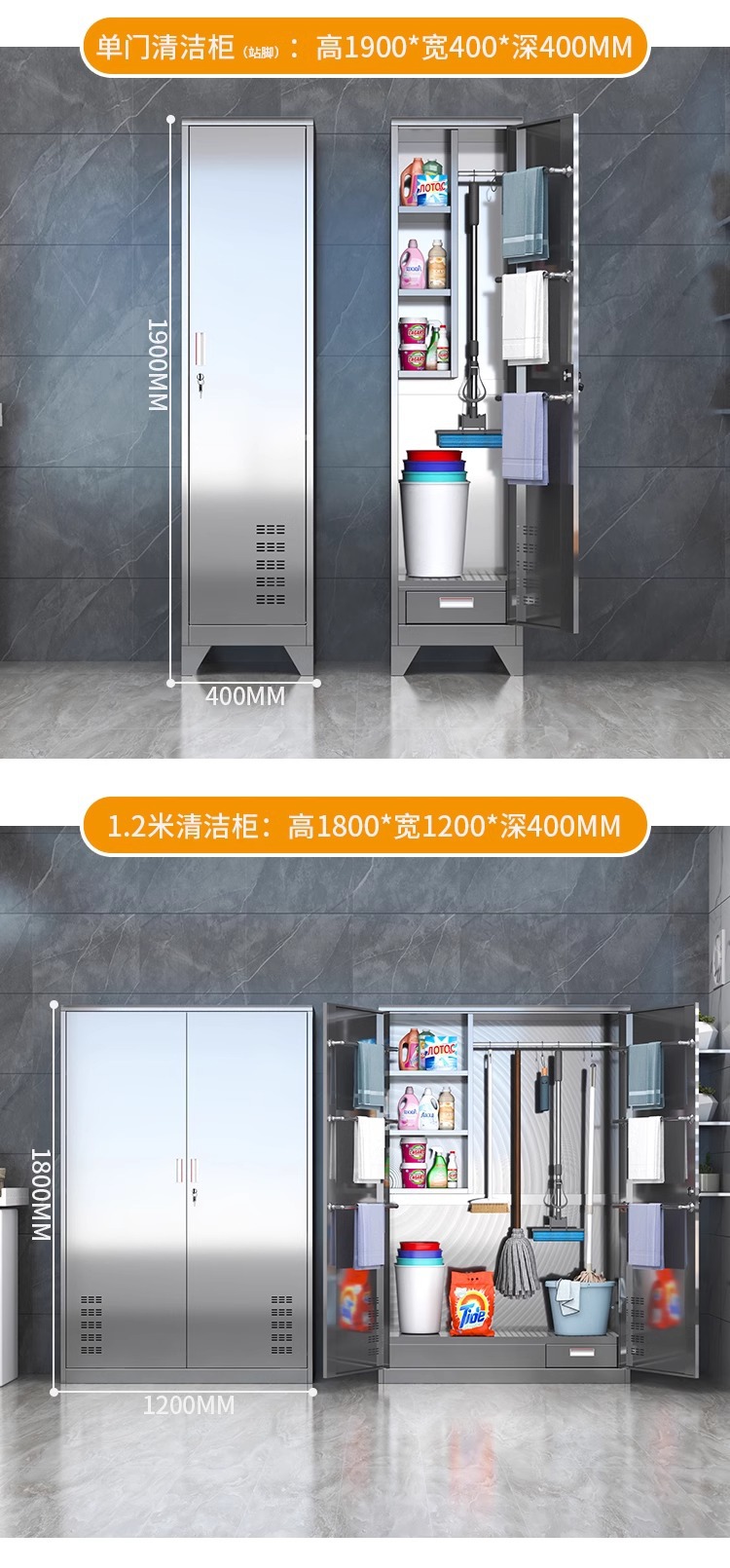 • 304 이중 도어 1.2m 와이드 청소 캐비닛