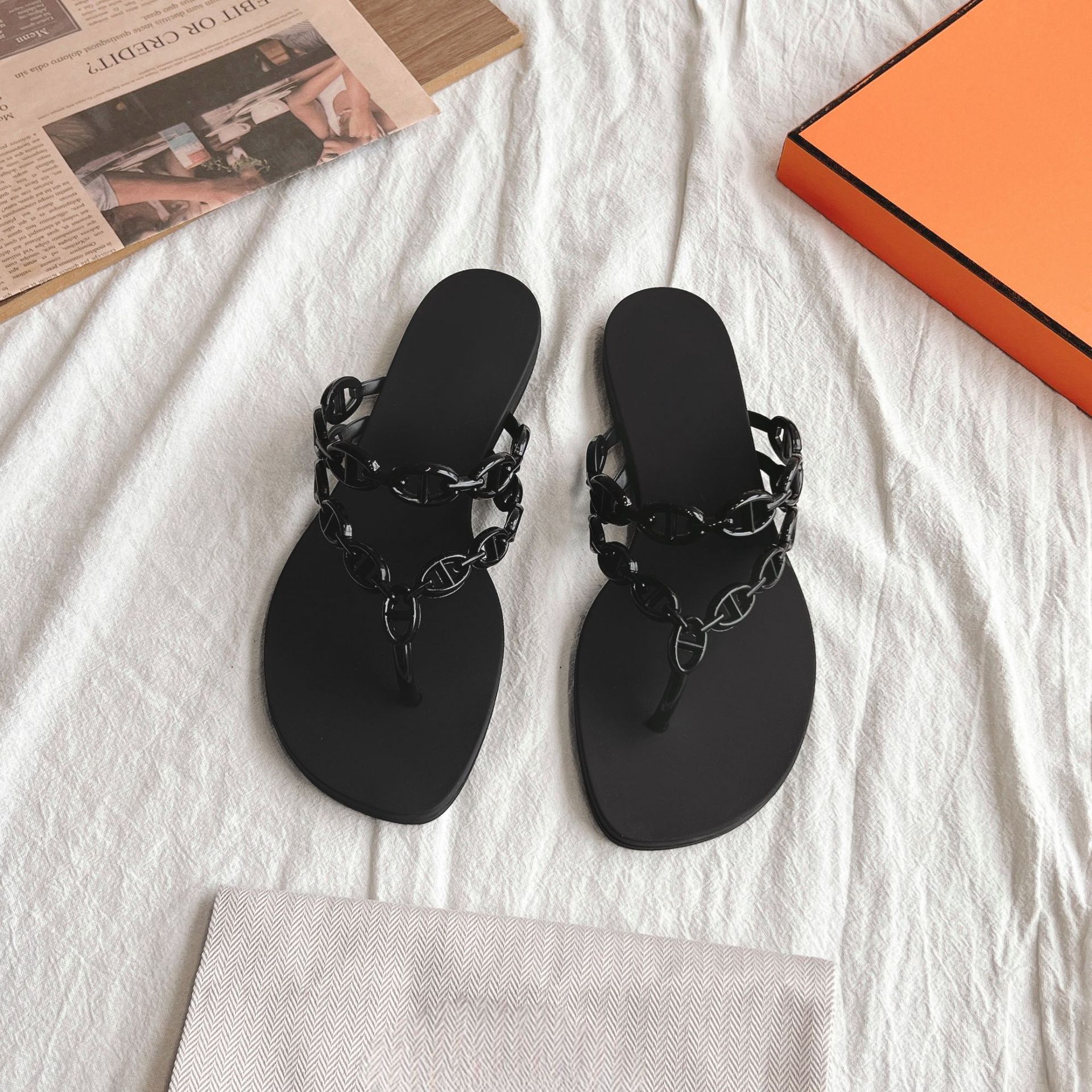 가벼운 젤리 슈즈와 H 체인 돼지 코 플립 플롭 TPU 외부 여성용 플랫 비치 플립 온 샌들스토어 가기