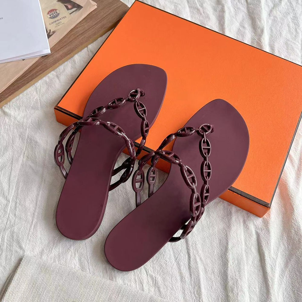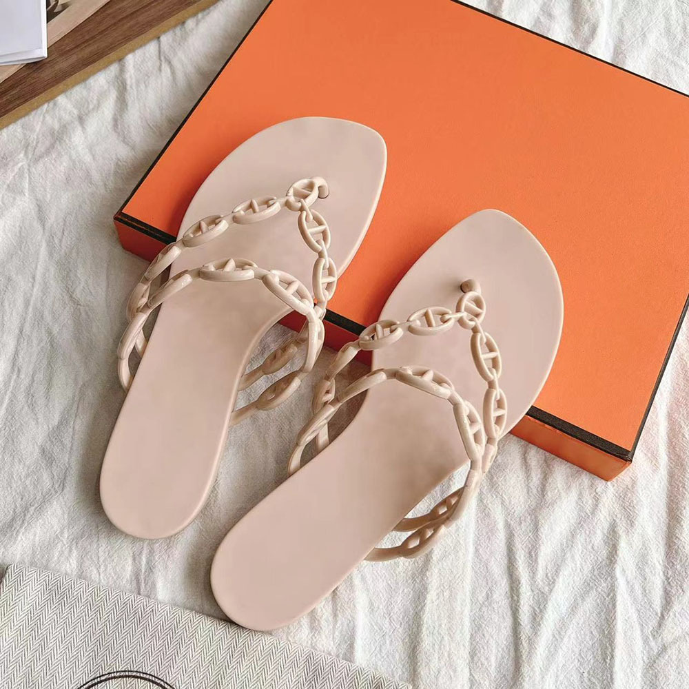 가벼운 젤리 슈즈와 H 체인 돼지 코 플립 플롭 TPU 외부 여성용 플랫 비치 플립 온 샌들