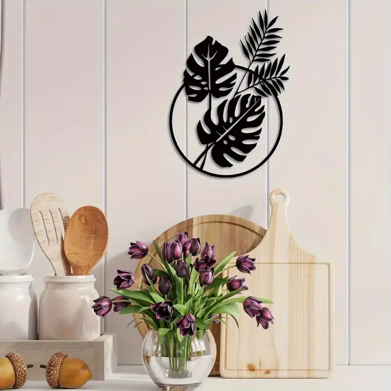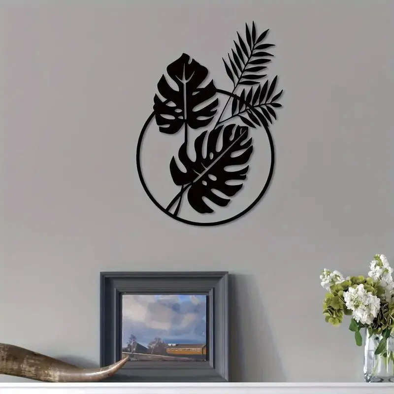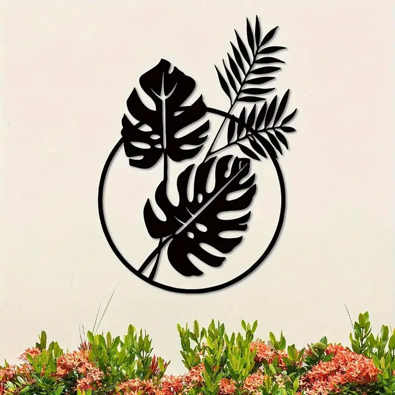 국경 종려 나무 잎 금속 벽 예술, 금속 벽 조각, 식물 실루엣 장식, 가정 장식