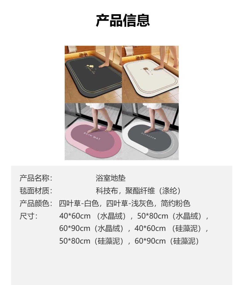 국경 간 아마존 핫 세일 욕실 미끄럼 방지 매트 가정용 화장실 바닥 매트 흡수성 더티 저항하는 매트 디 아톰 머드 풋 매트