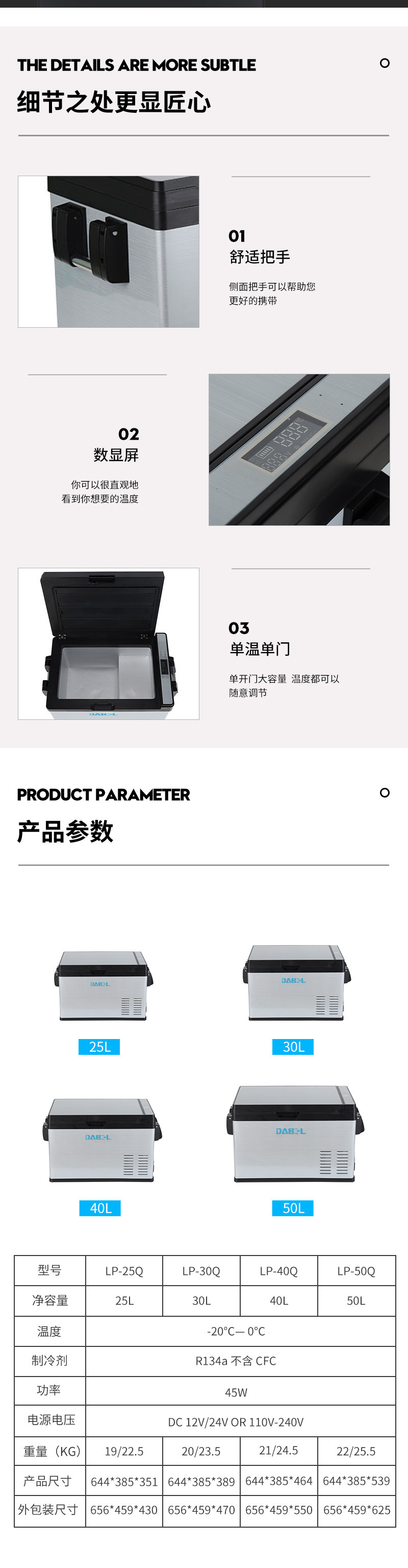 공장 도매 LP-25Q 야외 차량용 냉장고 휴대용 차량용 압축기 냉장고 차량 및 가정 겸용 냉장고