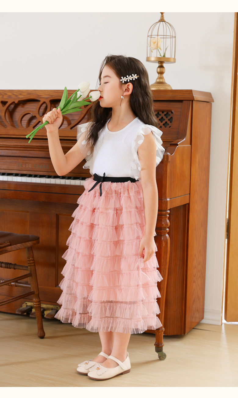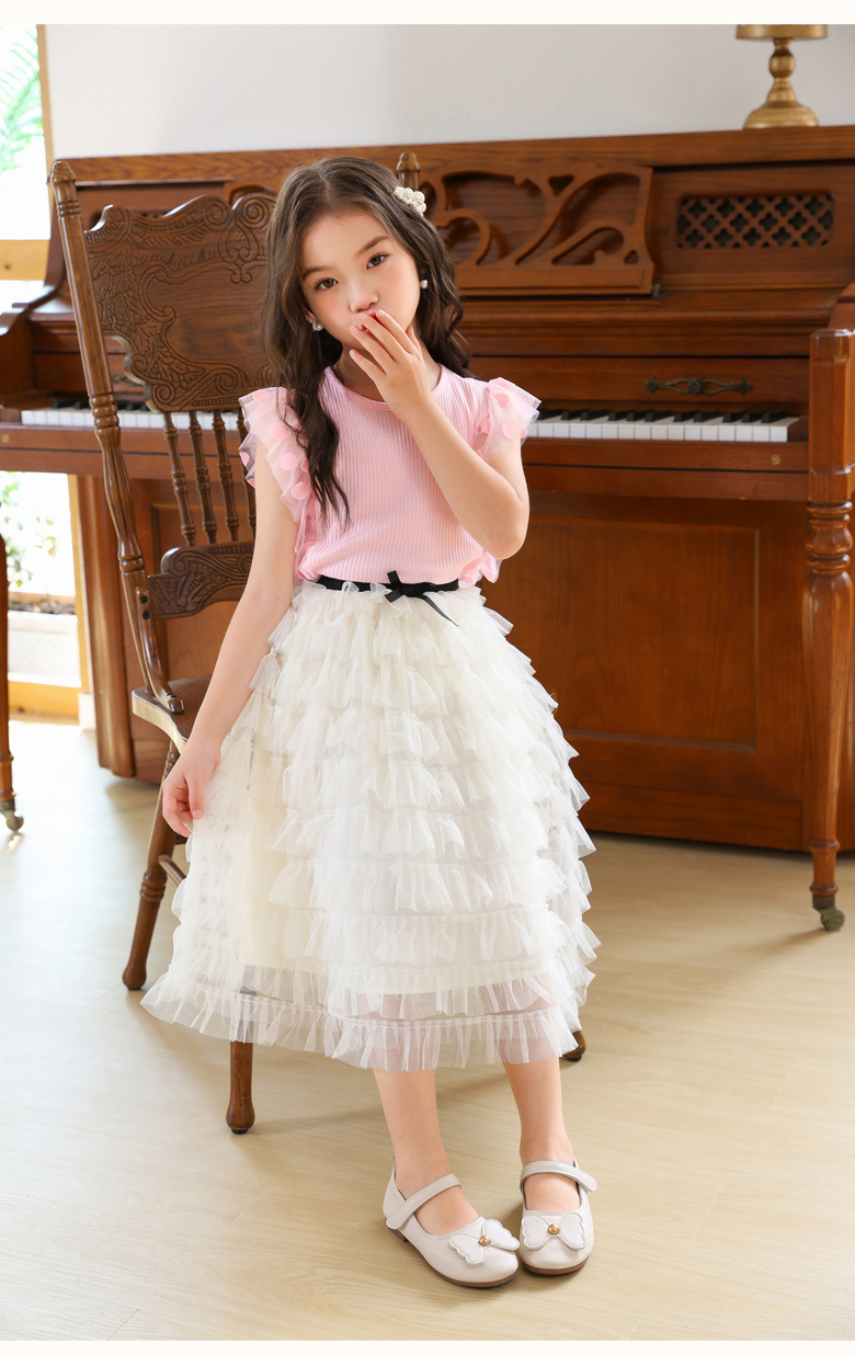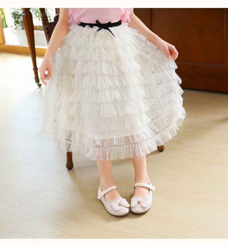 여자 치마 한국 스타일 요정 거즈 스커트 어린이 공주 메쉬 미디 스커트 달콤한 케이크 스커트 화이트 퍼프 스커트