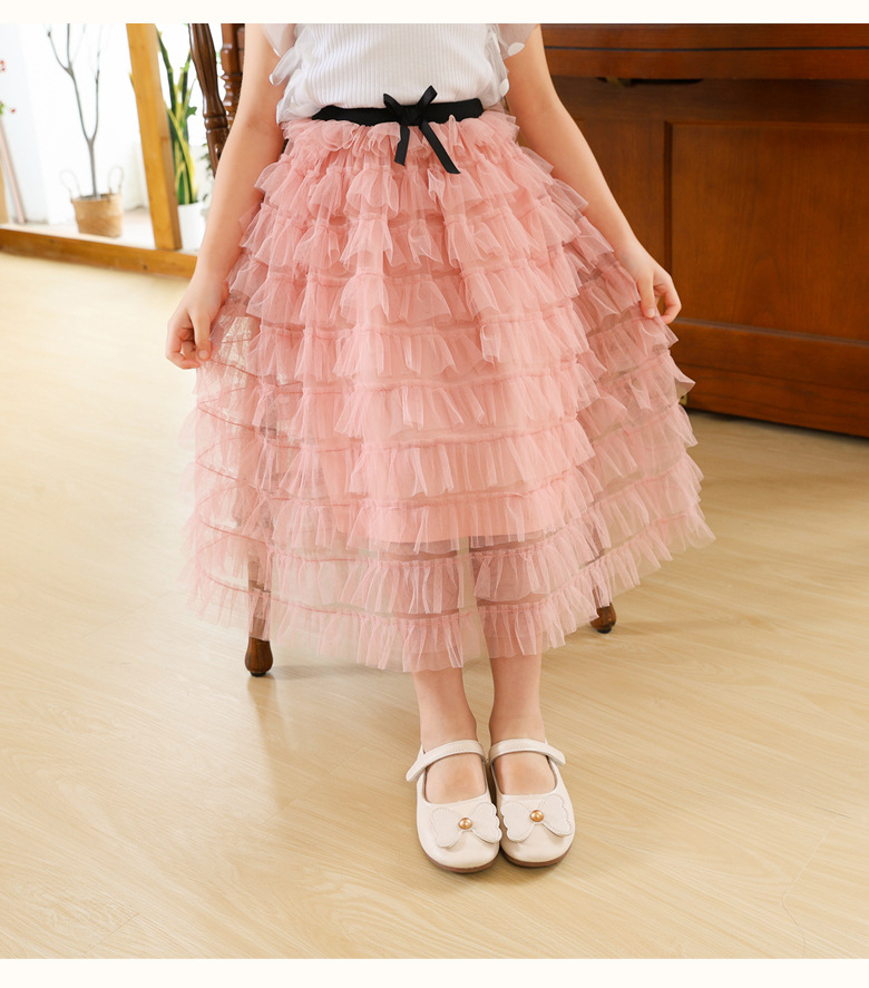 여자 치마 한국 스타일 요정 거즈 스커트 어린이 공주 메쉬 미디 스커트 달콤한 케이크 스커트 화이트 퍼프 스커트스토어 가기