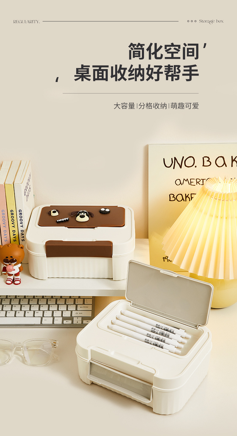 데스크탑 저장 상자 대용량 분할 헤어 액세서리 저장 상자 현대 간단한 다층 다기능 방진 펜 뚜껑