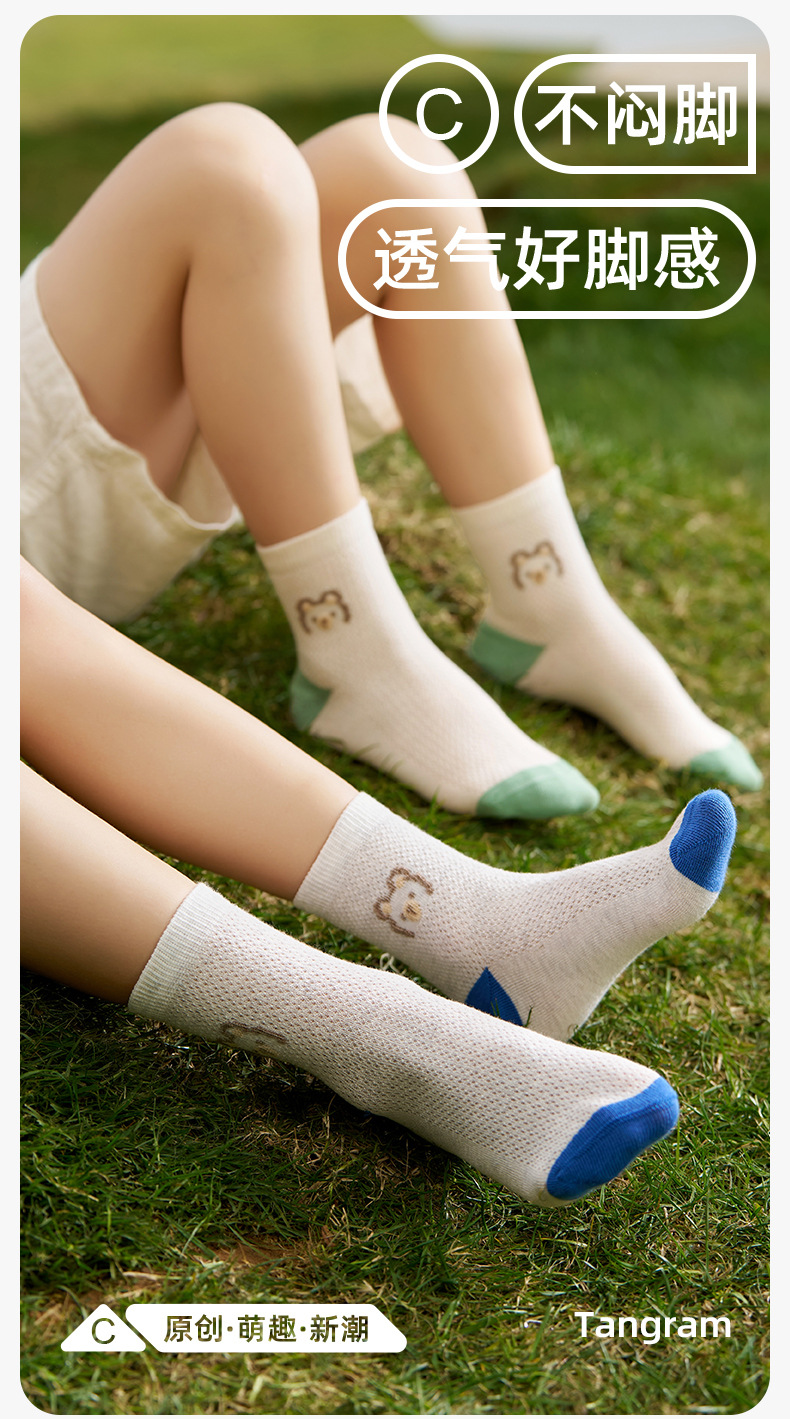 Tangram 어린이 양말 여름 얇은 통기성 메쉬 양말 중소형 어린이 뼈없는 소년 양말 걸스 미드 튜브 양말