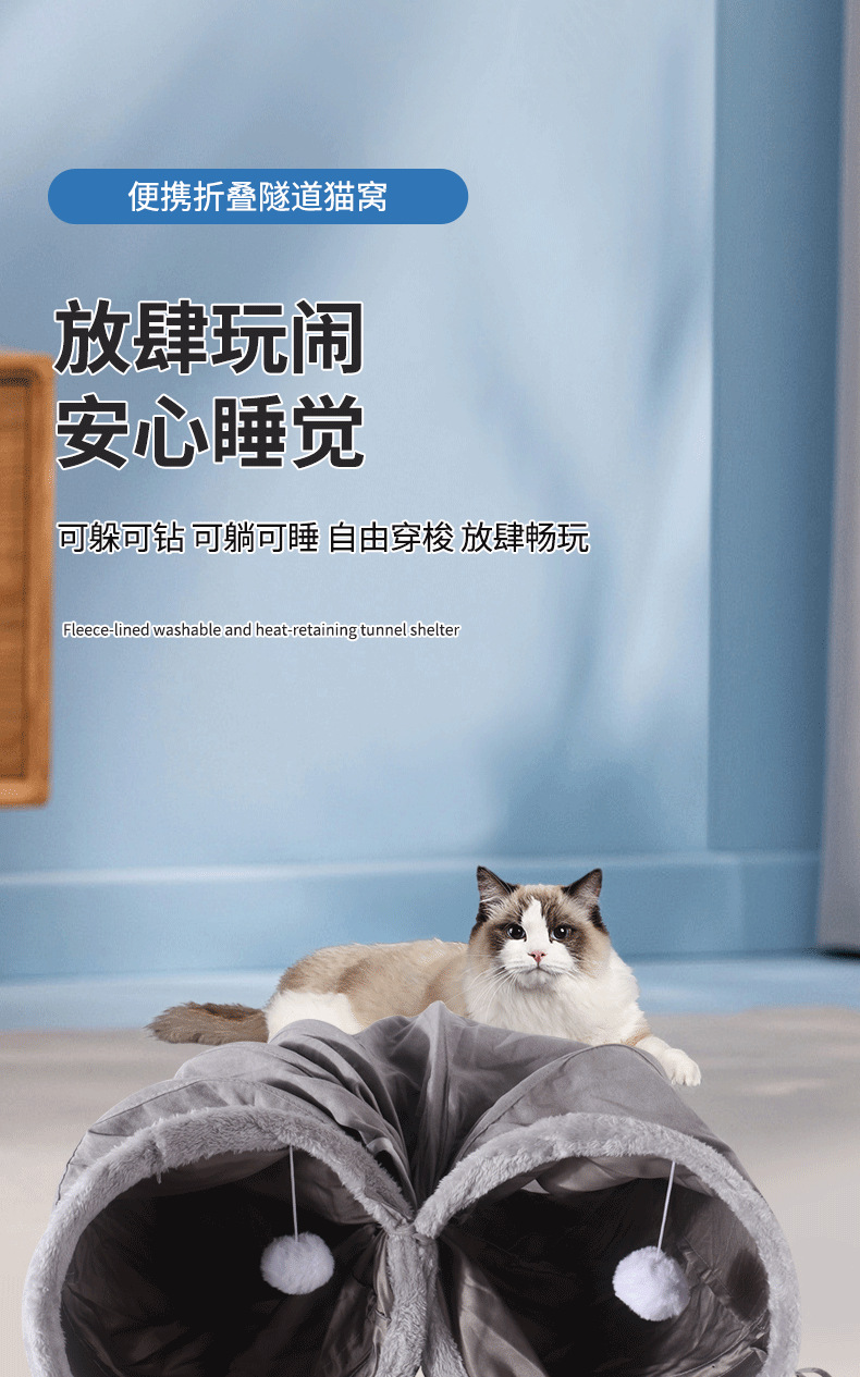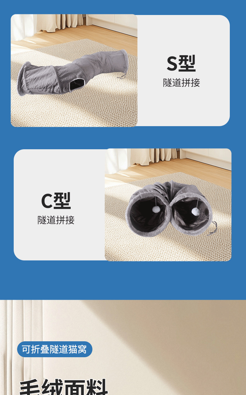 공장 직송 휴대용 접이식 S자형 고양이 터널 스웨이드 고양이 통로 지능 개발 고양이 장난감 롤링 드릴 버킷