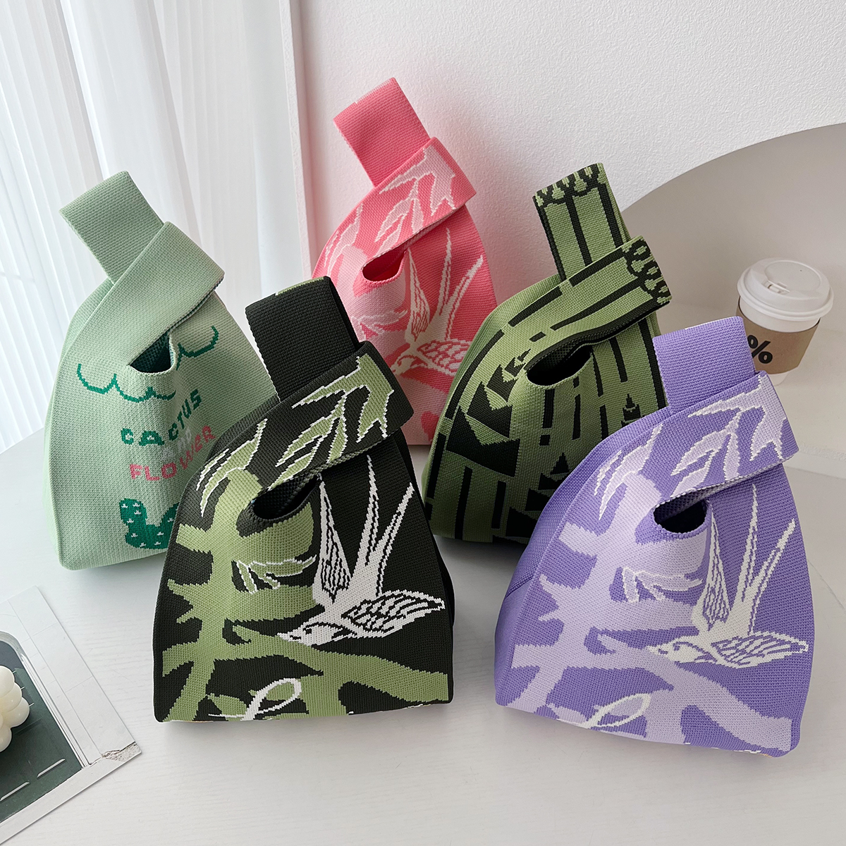 2024 년 봄 새 니트 가방 귀여운 선인장 여성 핸드백 일본식 및 한국식 올 매치 휴대용 점심 가방스토어 가기