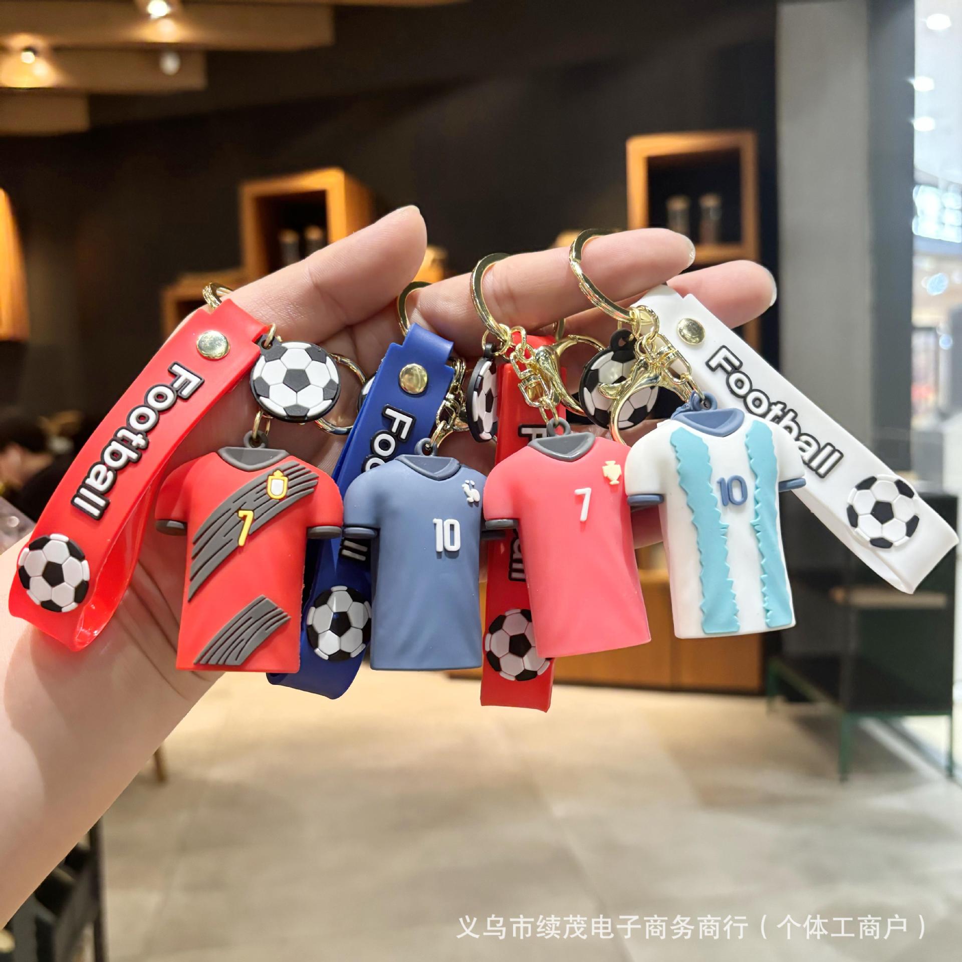 창의적인 실리콘 만화 메시 호날두 유니폼 열쇠고리 장식품 도매 블라인드 박스 판촉용 작은 선물 장식품