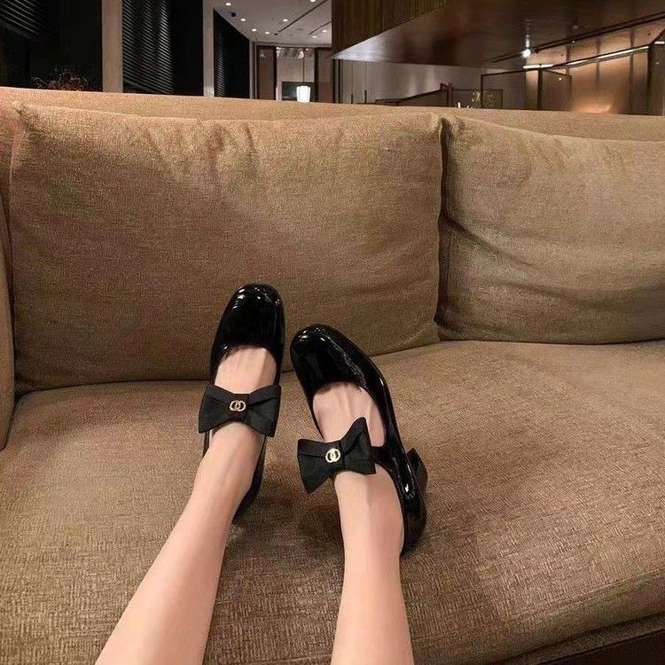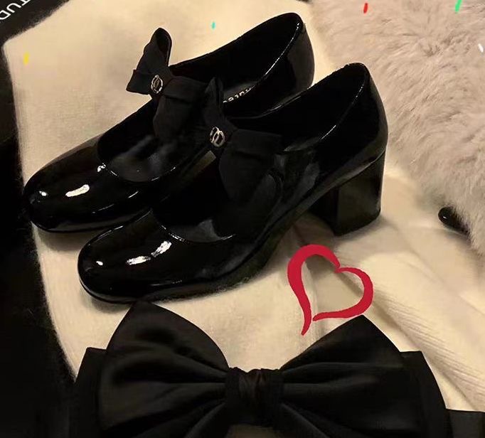 메리제인 리본 하이힐 프렌치 스타일 두꺼운 굽 진짜 소가죽 여성 신발 스트랩 얕은 입구 공주 신발 다용도스토어 가기