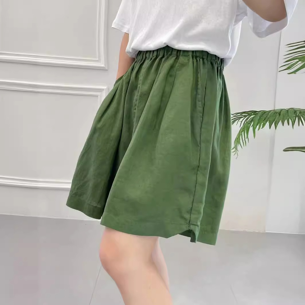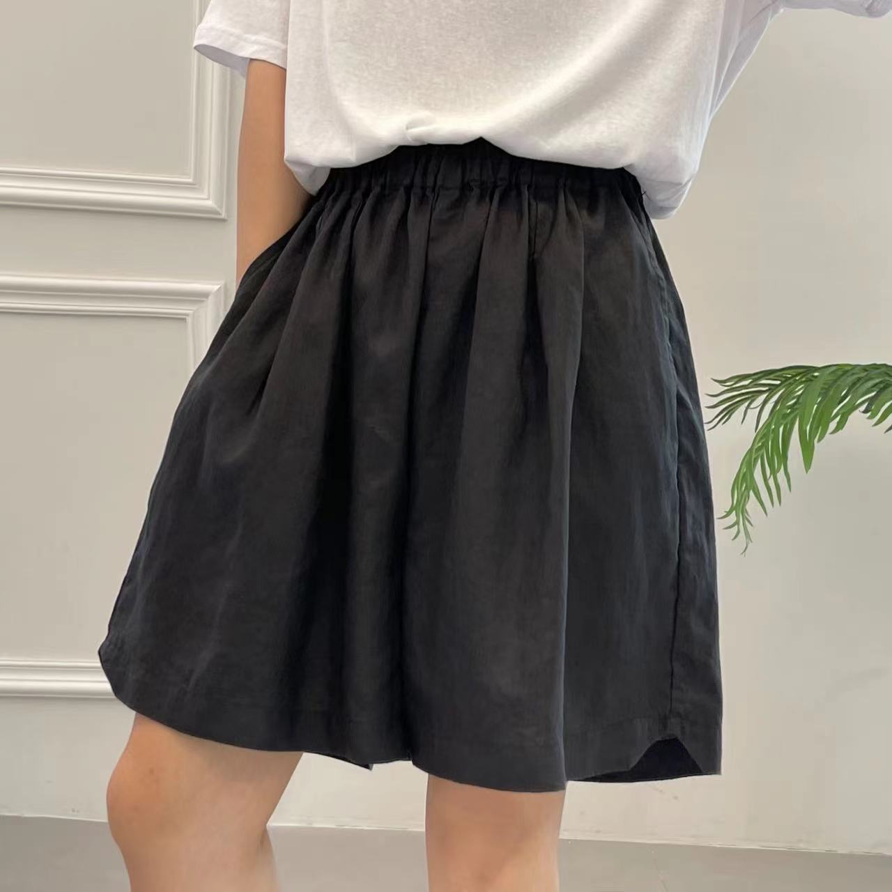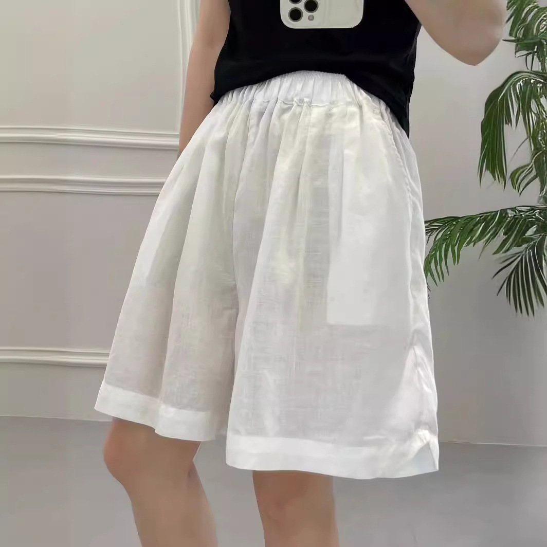 2025 여름 새로운 예술 레트로 린넨 단색 반바지 여성용 탄성 허리 3 점 바지 마이크로 탄성 여성용 캐주얼 바지