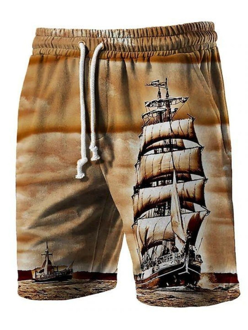 2024 국경 여름 새로운 남성 해변 캐주얼 반바지 3D 디지털 인쇄 느슨한 스트레이트 비치 바지