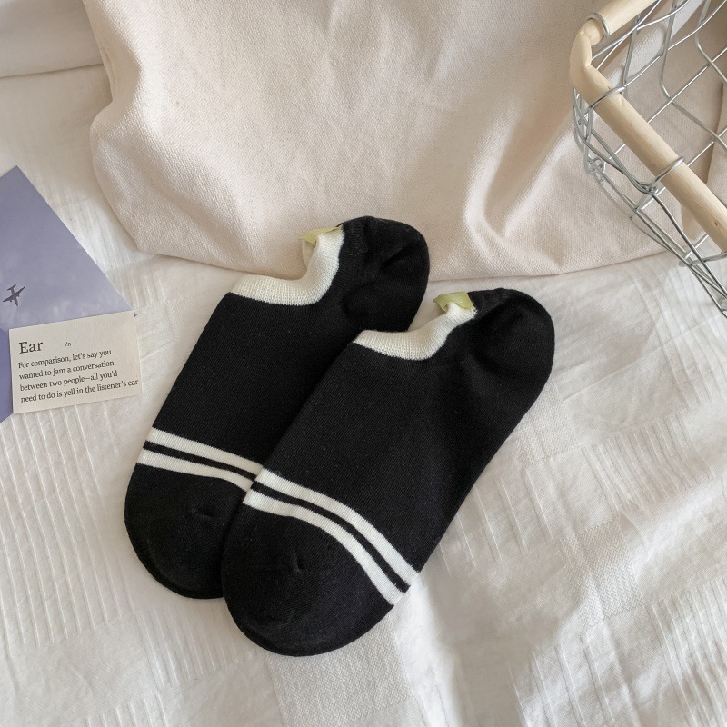 양말 여성 스트라이프 인 타이드-얇은 힐 천 라벨 입고받은 보트 양말 저도움 일본 스포츠 학생 보이지 않는 면화 양말