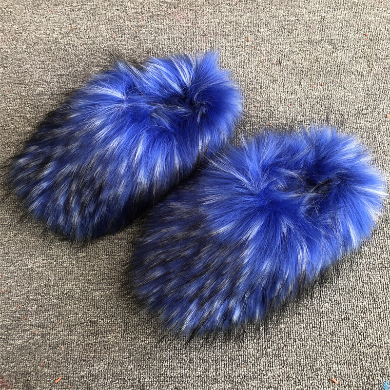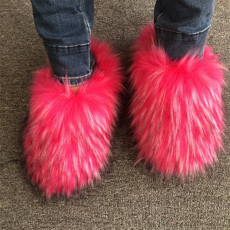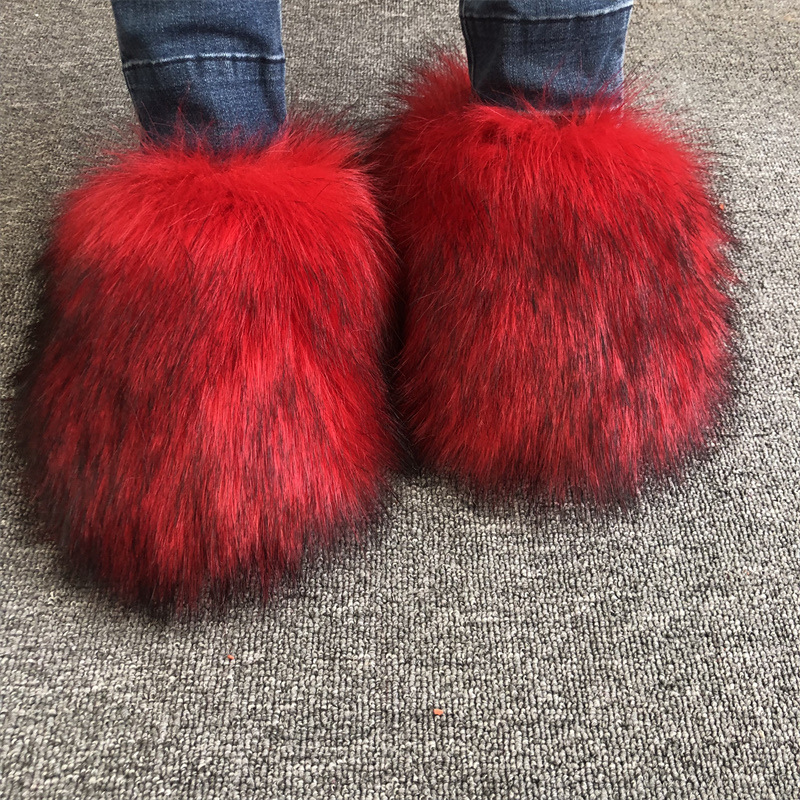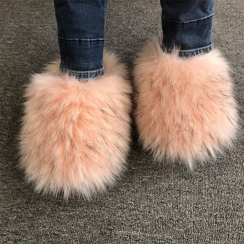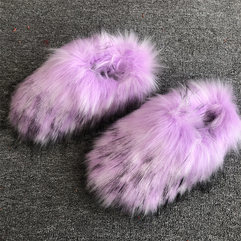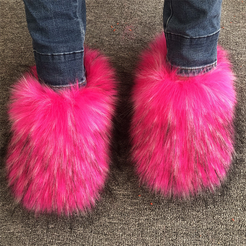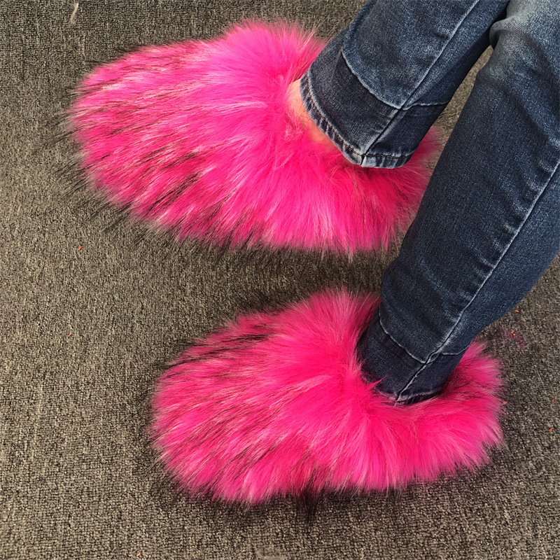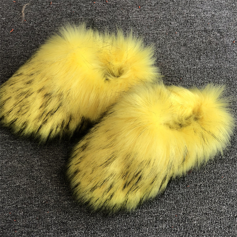 국경 2024 유럽과 미국의 새로운 모조 너구리 모피 슬리퍼 여성 가을과 겨울 집과 벨벳 따뜻한 모조 모피 봉제 슬리퍼