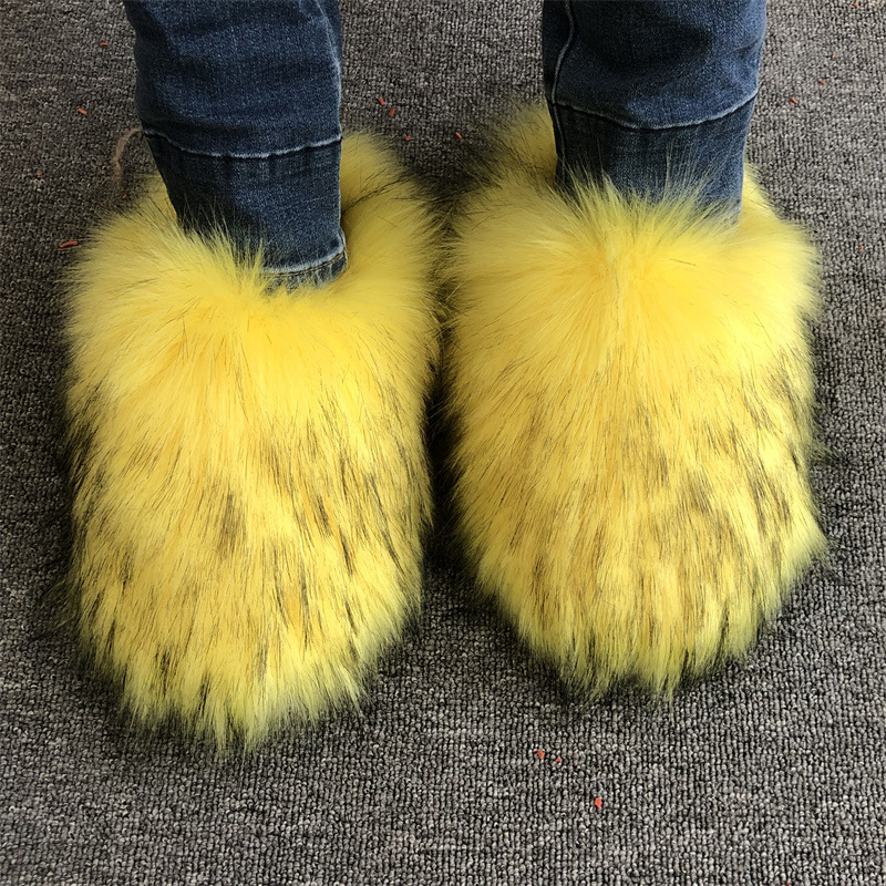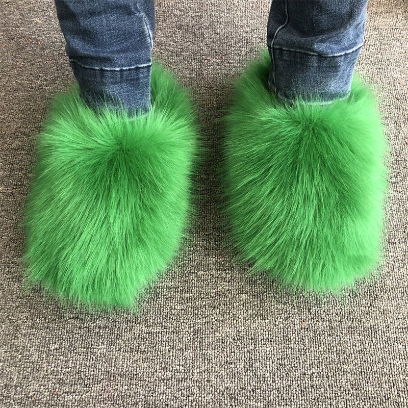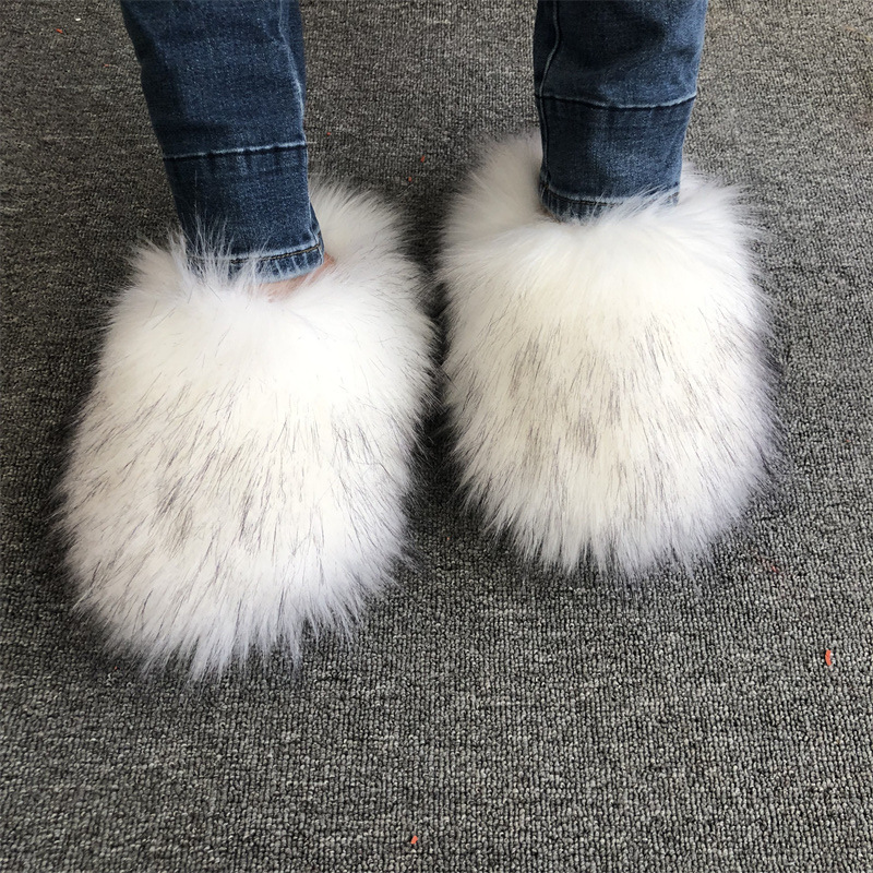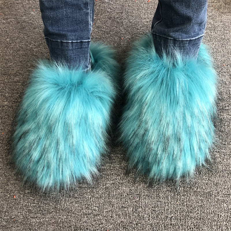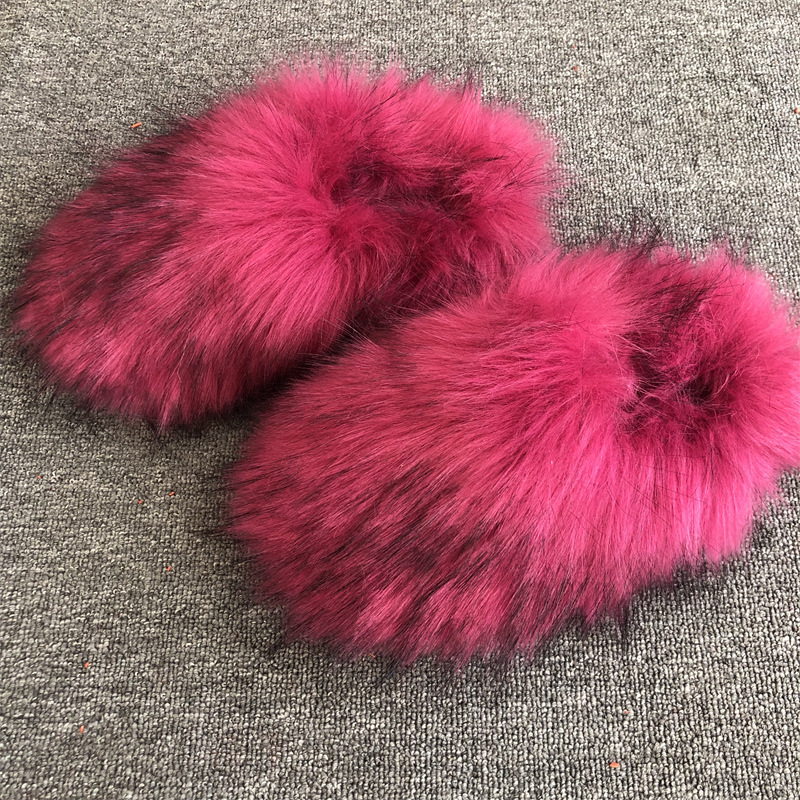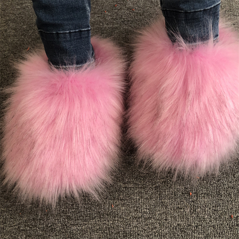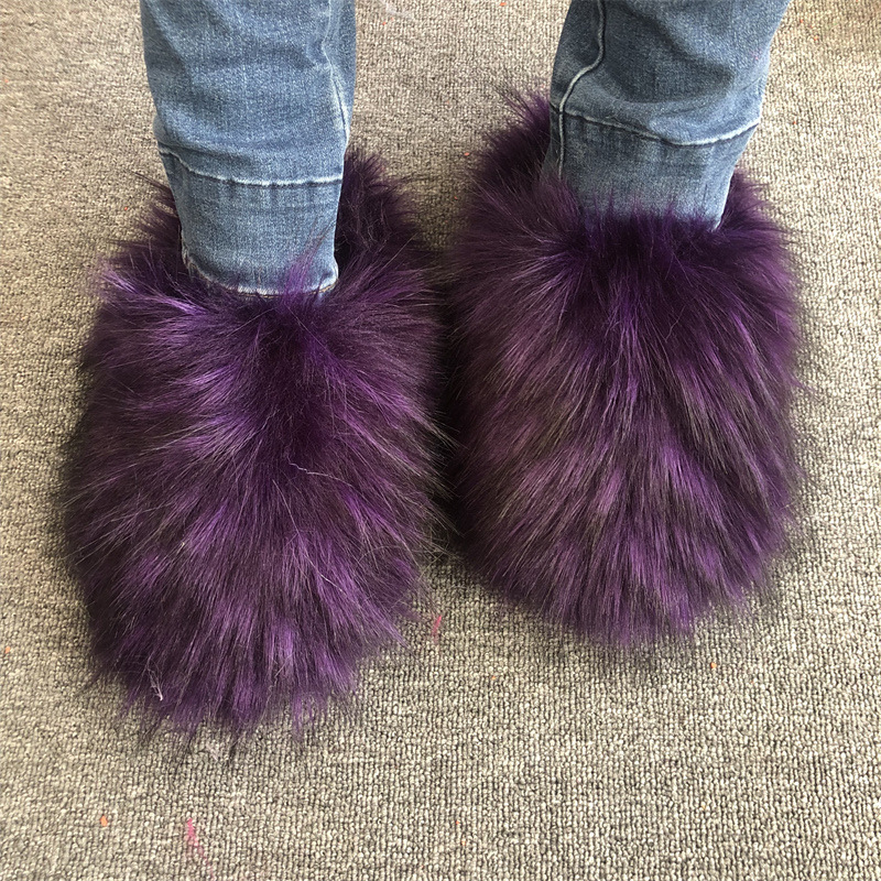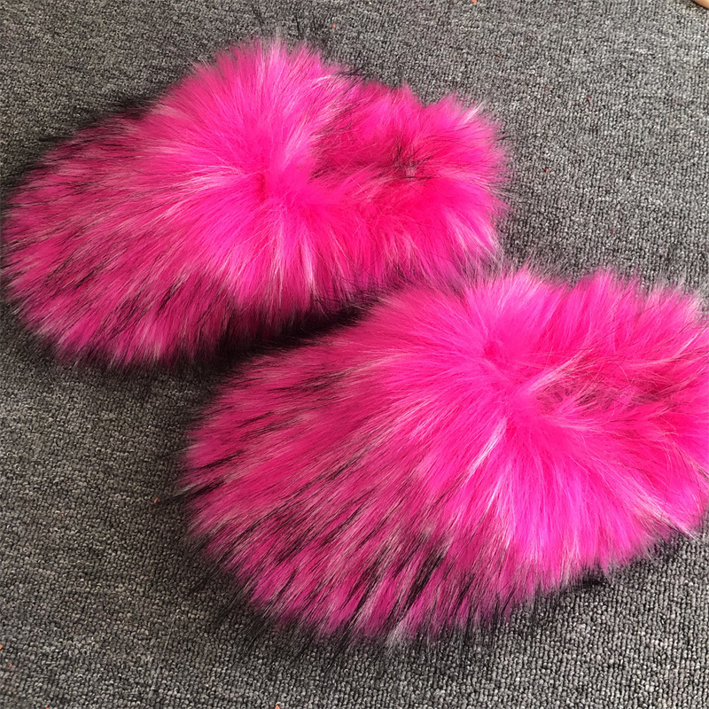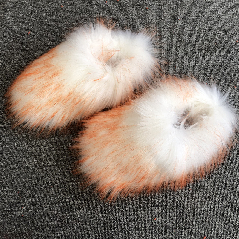 국경 2024 유럽과 미국의 새로운 모조 너구리 모피 슬리퍼 여성 가을과 겨울 집과 벨벳 따뜻한 모조 모피 봉제 슬리퍼