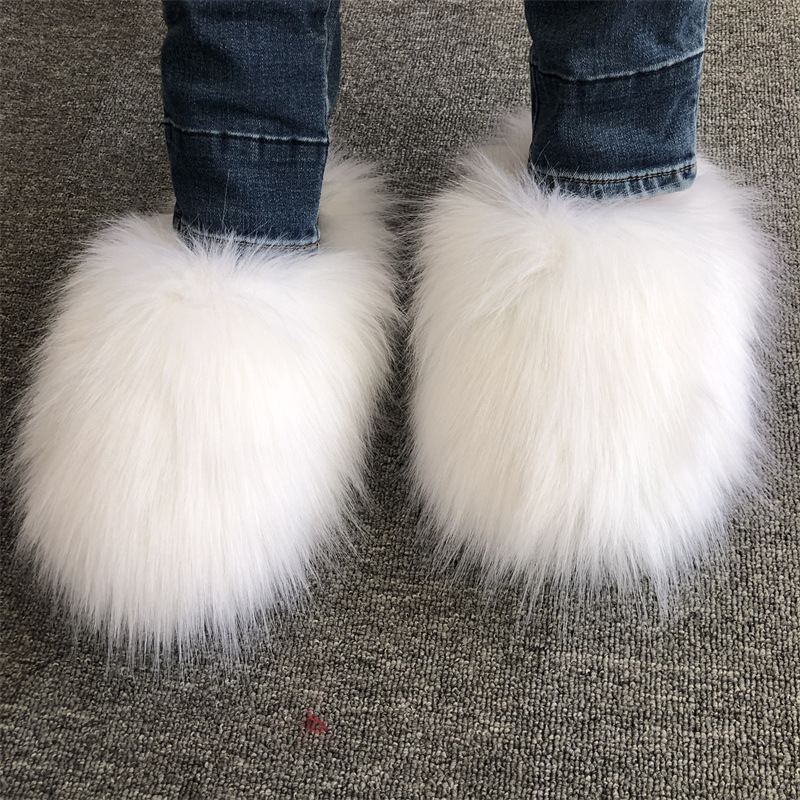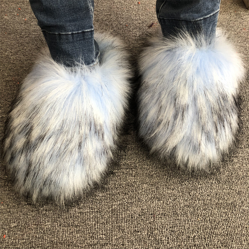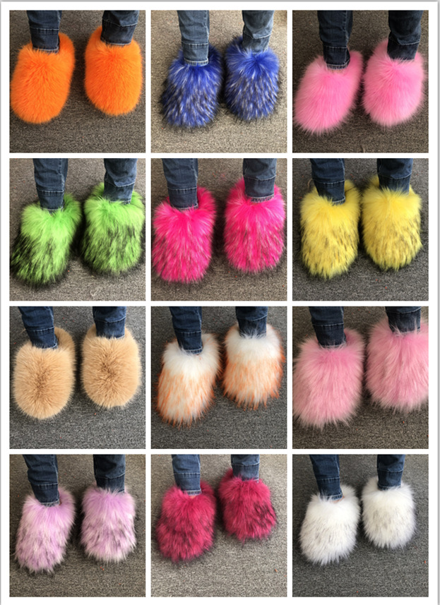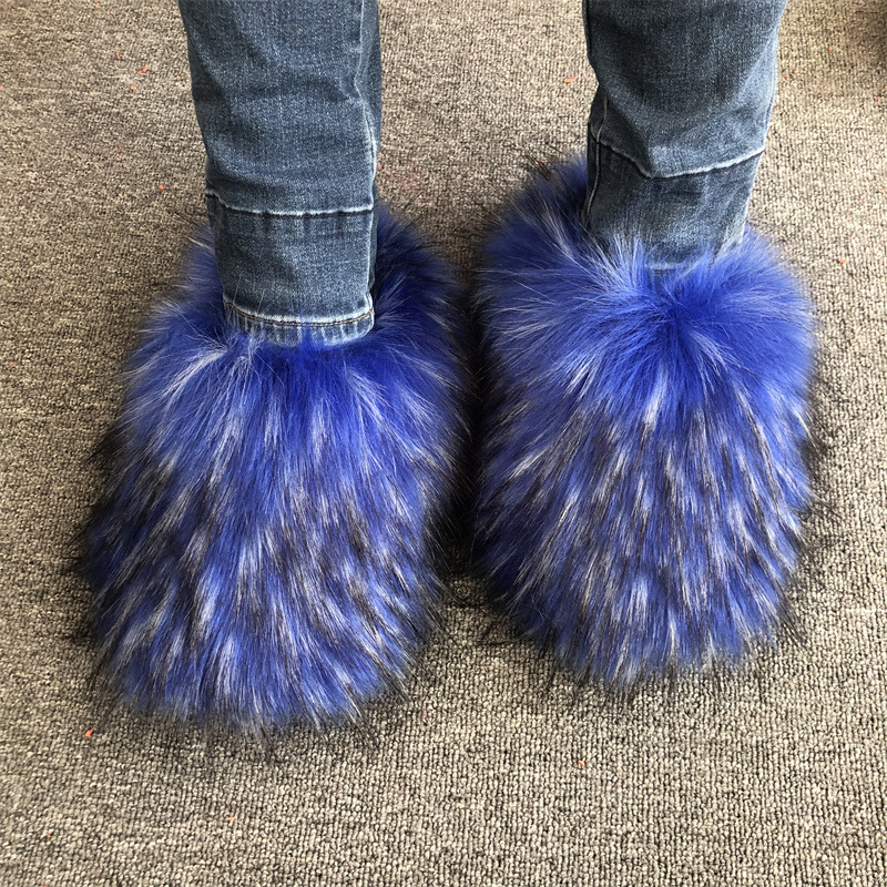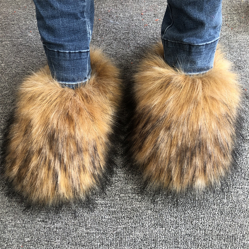 국경 2024 유럽과 미국의 새로운 모조 너구리 모피 슬리퍼 여성 가을과 겨울 집과 벨벳 따뜻한 모조 모피 봉제 슬리퍼스토어 가기