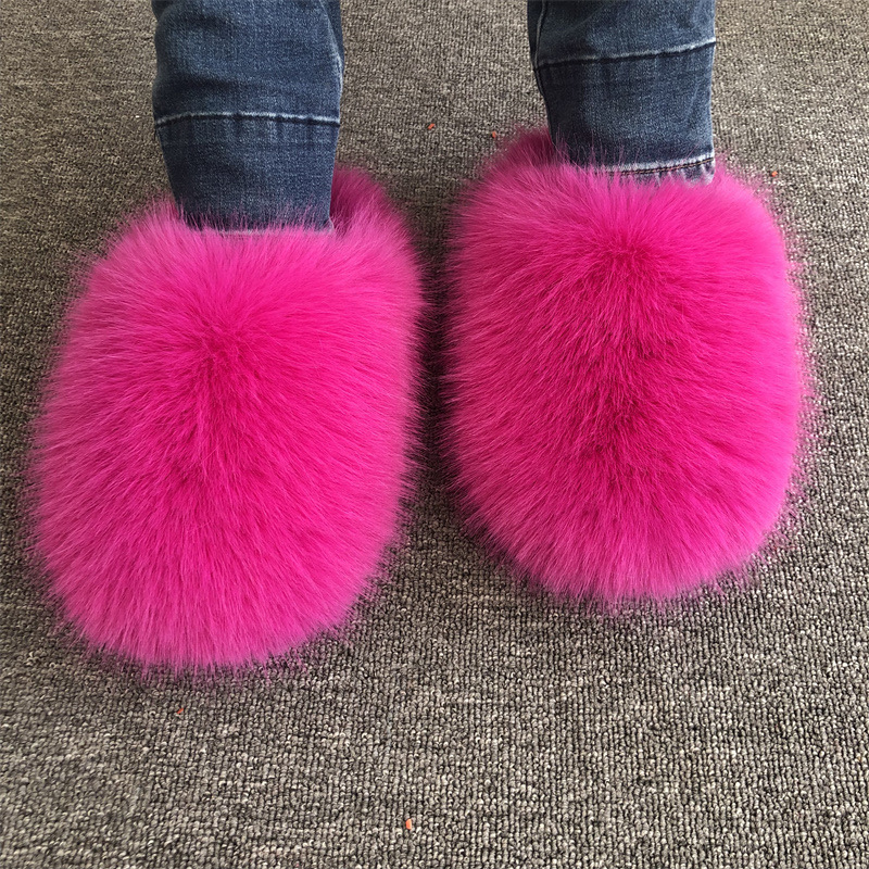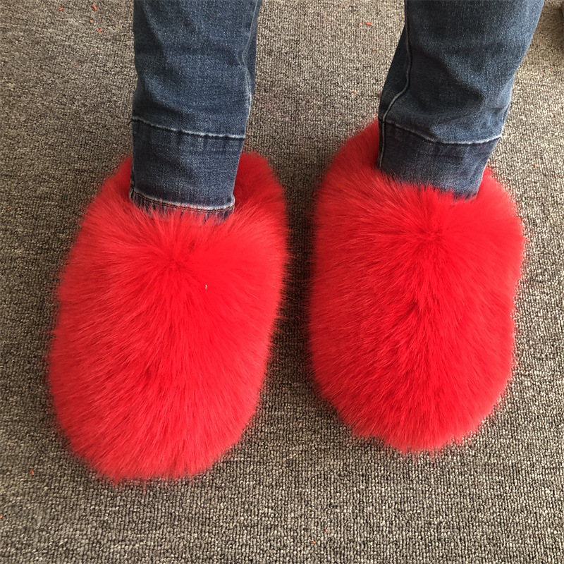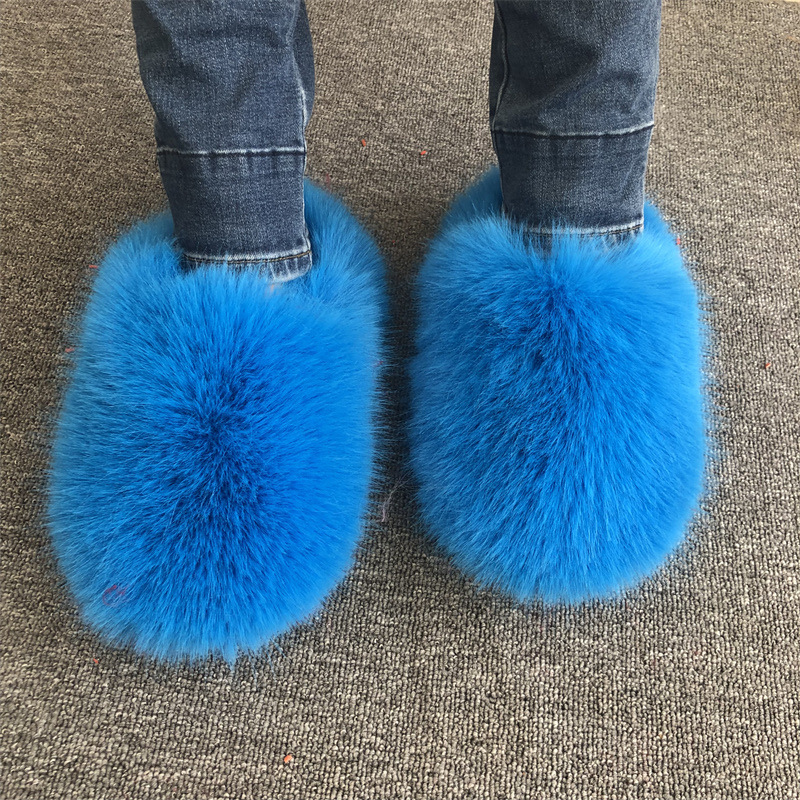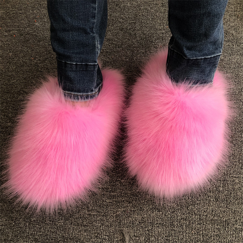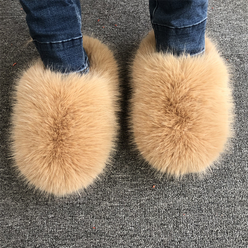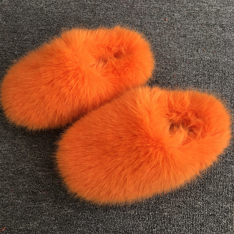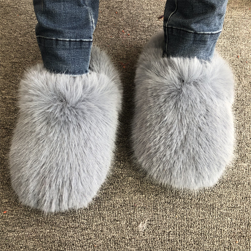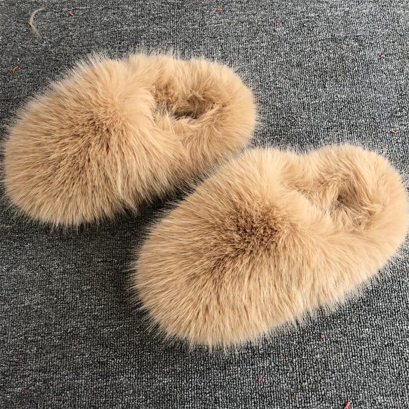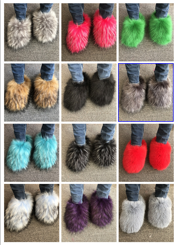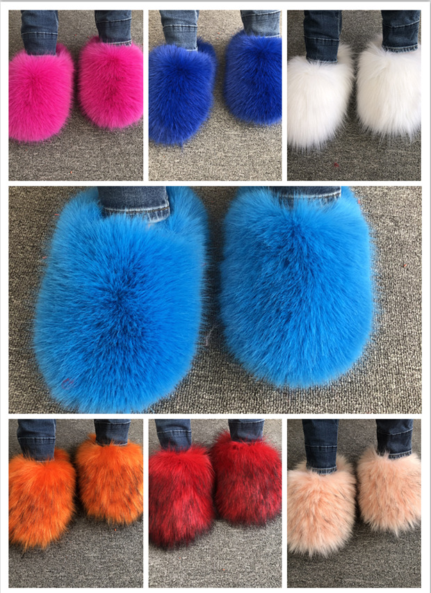 新款跨境仿貉子毛狐狸毛棉拖鞋,带后跟,可以室外可以居家穿着,超有范儿的欧美风格。