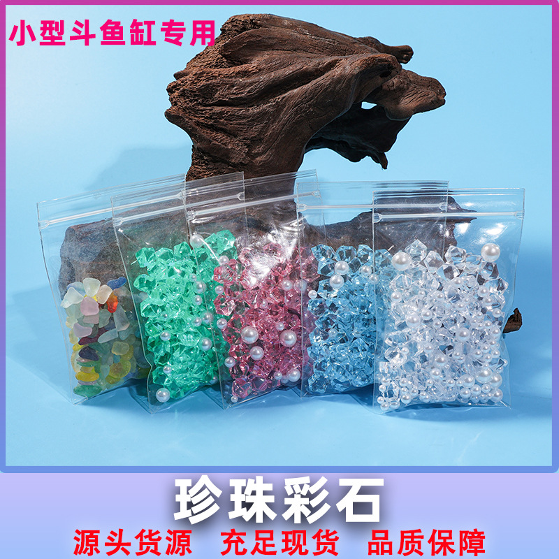• 珍珠水晶彩石斗鱼缸造景装饰底砂树脂透明斗鱼缸造景石头假珍珠