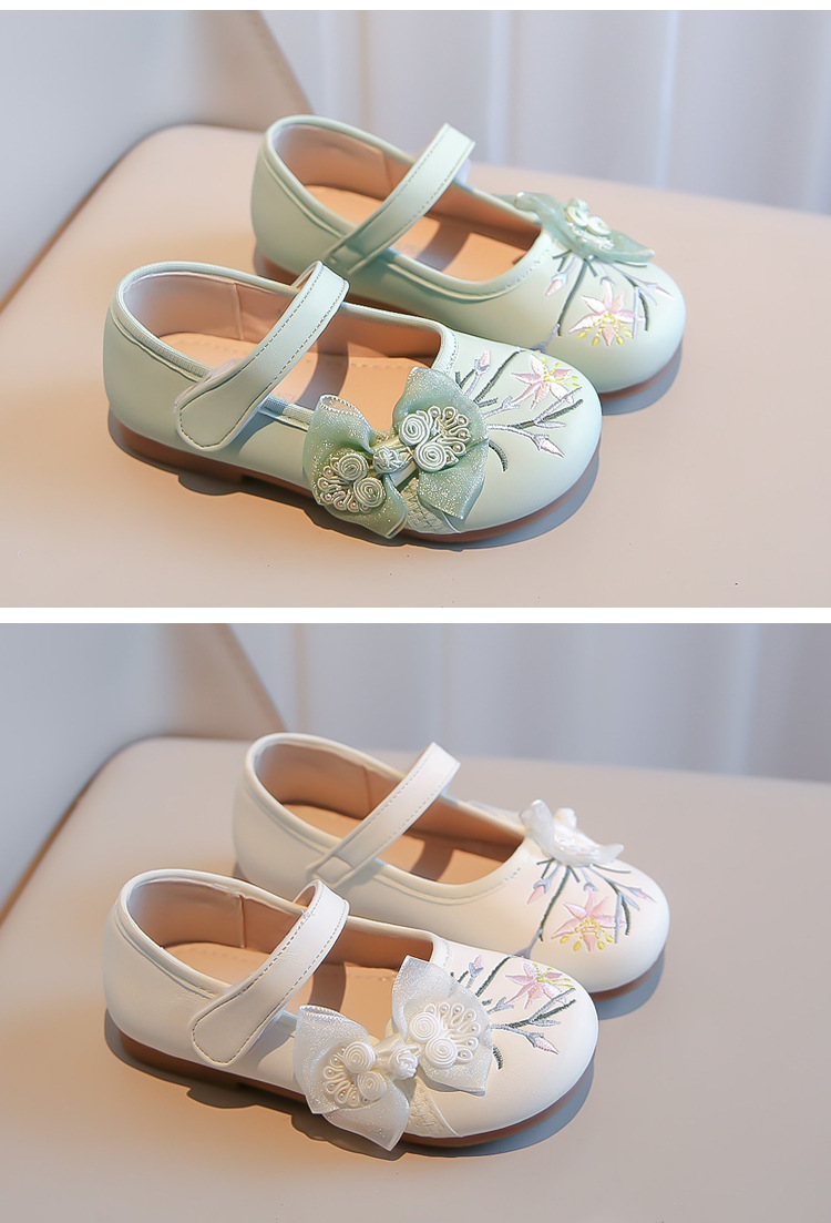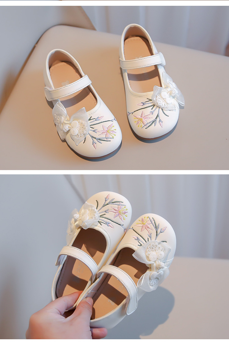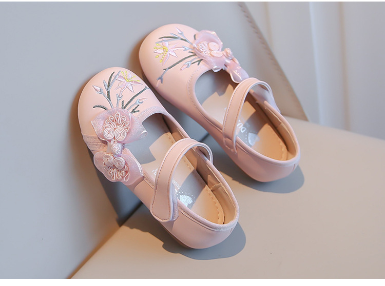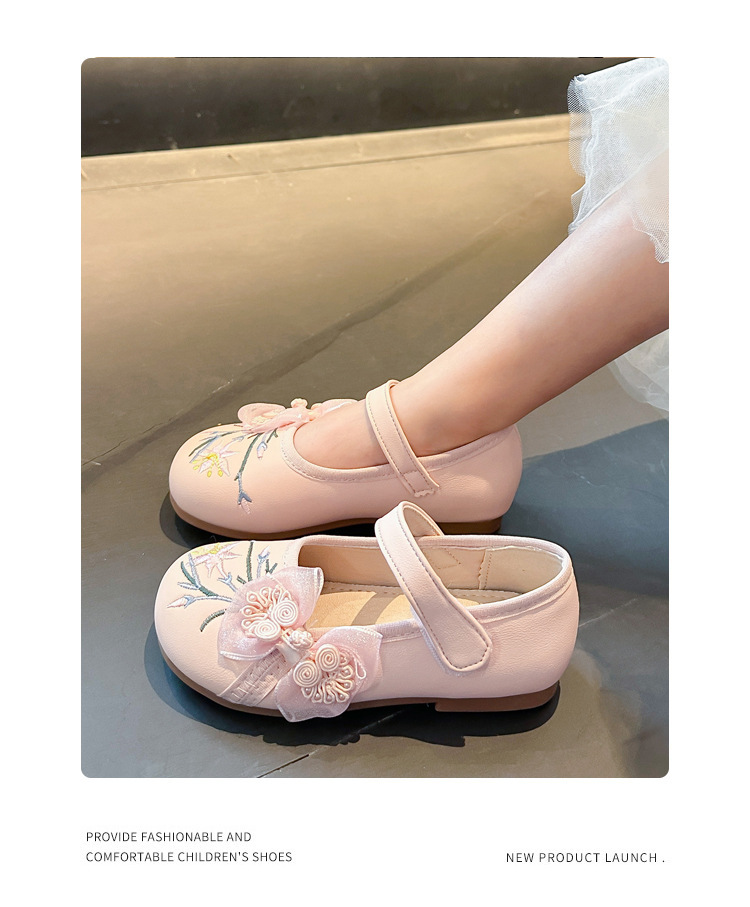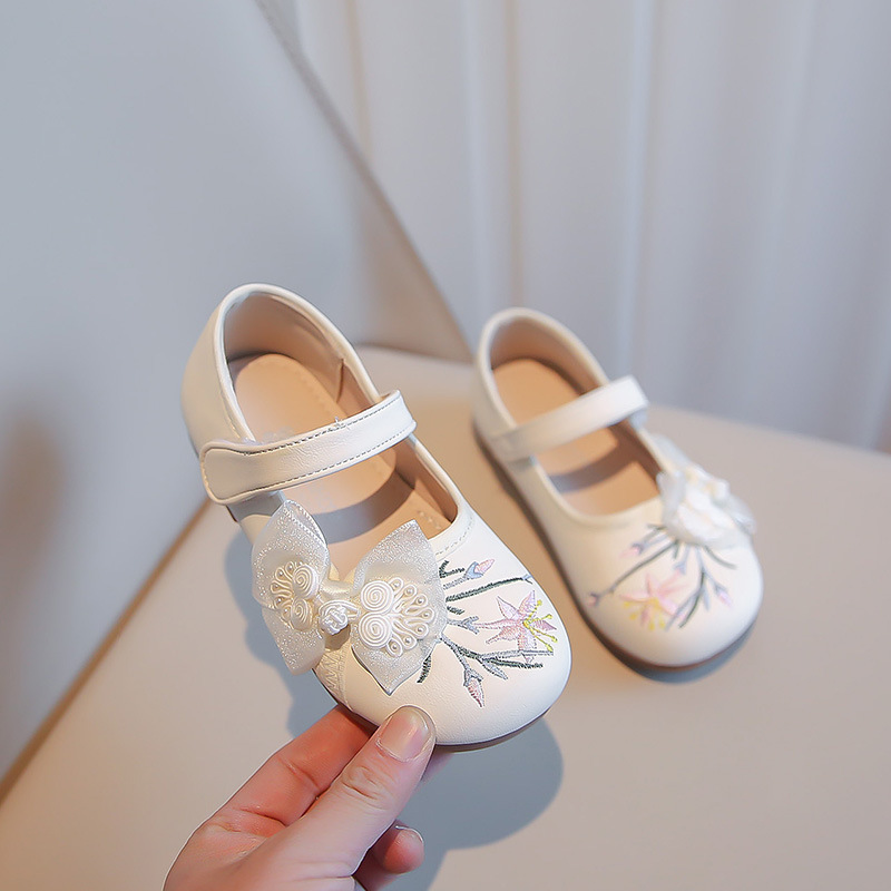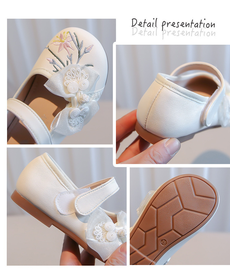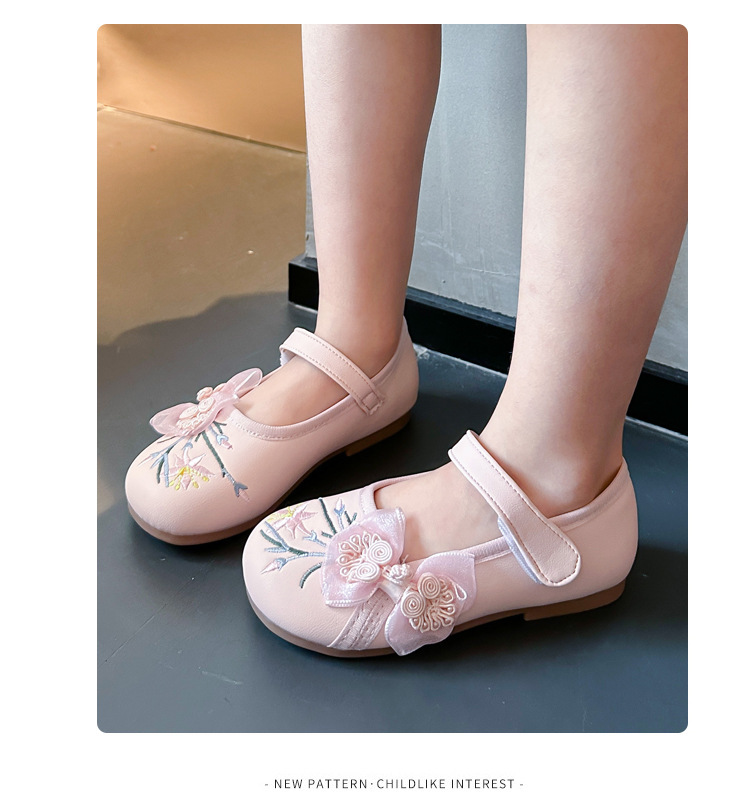 여자 신발 2024 봄 새로운 자수 Guofeng 빈티지 싱글 레이어 신발 여자 공주 신발 소프트 단독 어린이 가죽 신발스토어 가기
