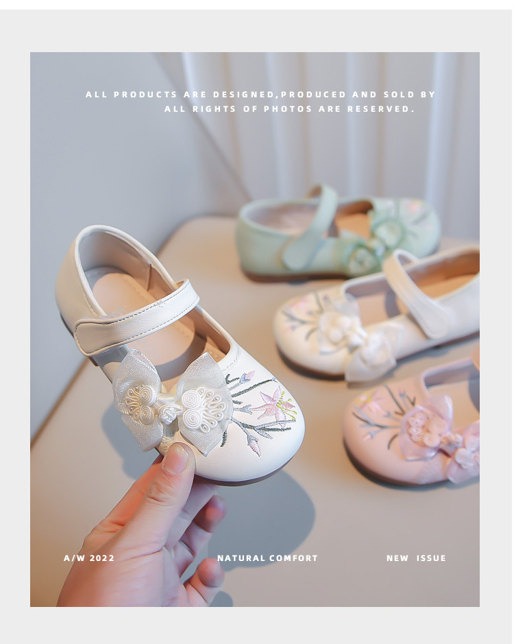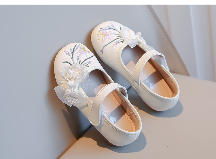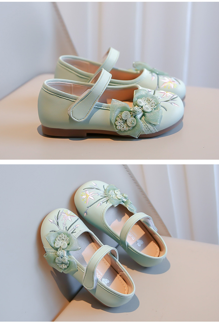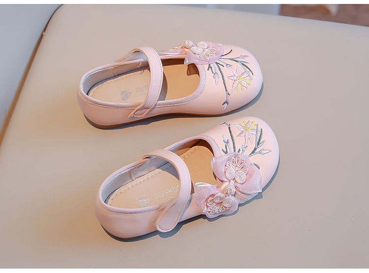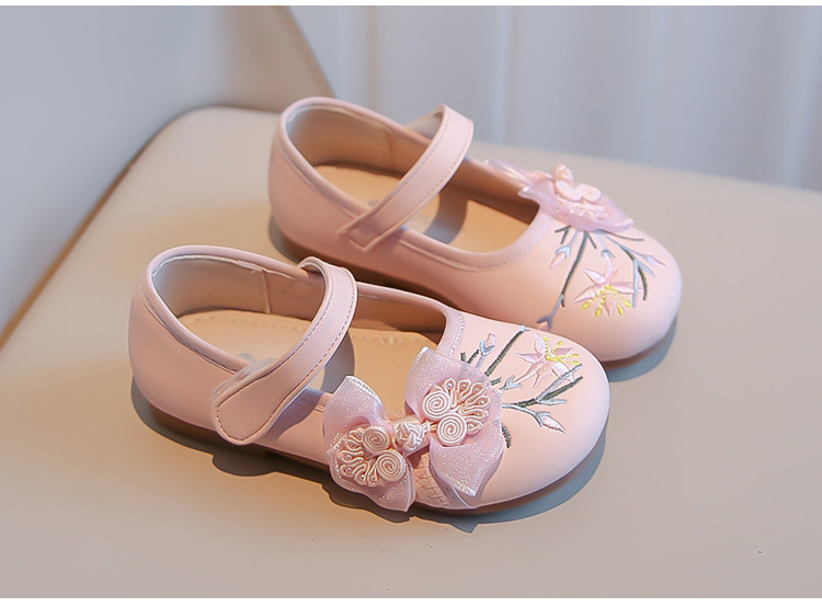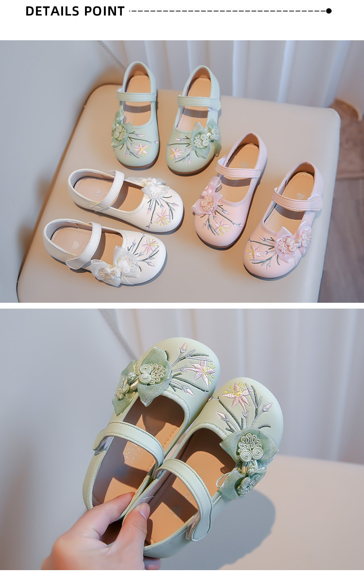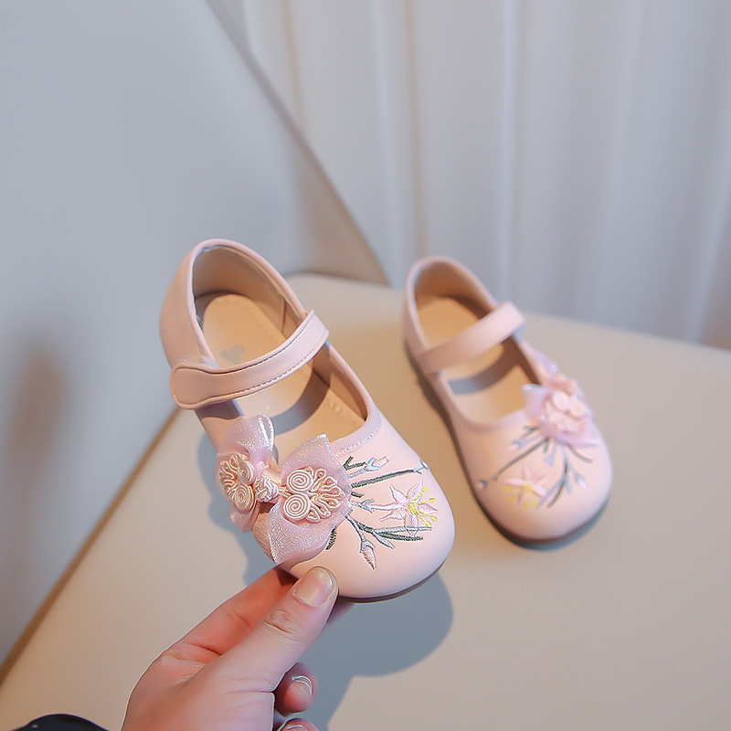 여자 신발 2024 봄 새로운 자수 Guofeng 빈티지 싱글 레이어 신발 여자 공주 신발 소프트 단독 어린이 가죽 신발스토어 가기