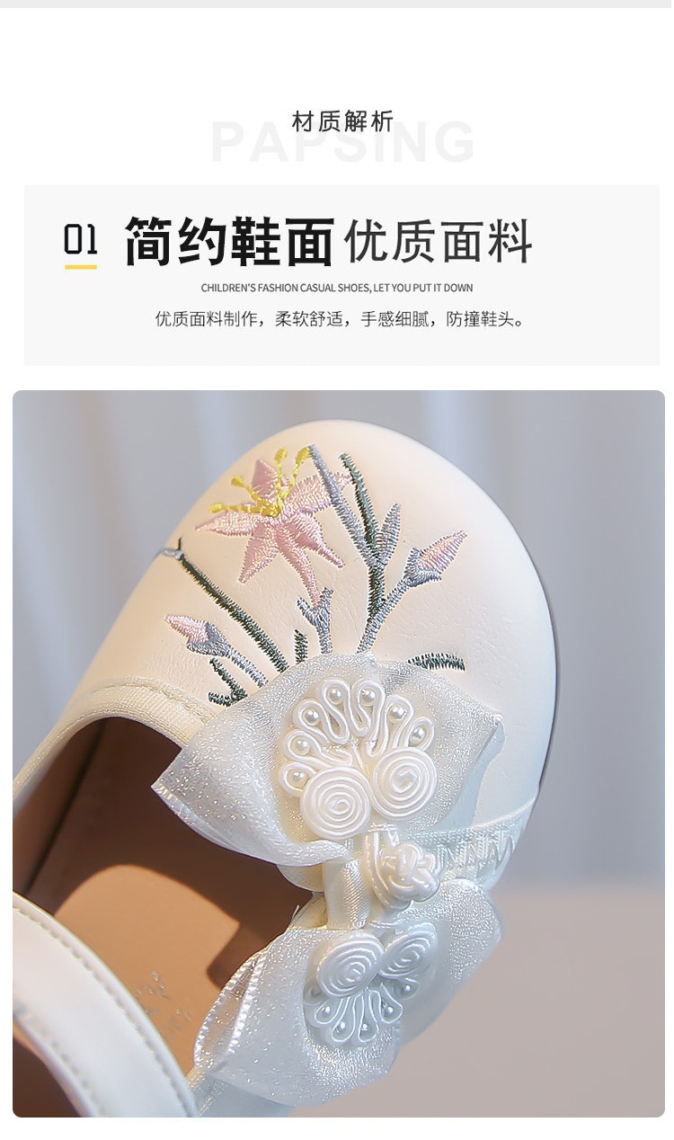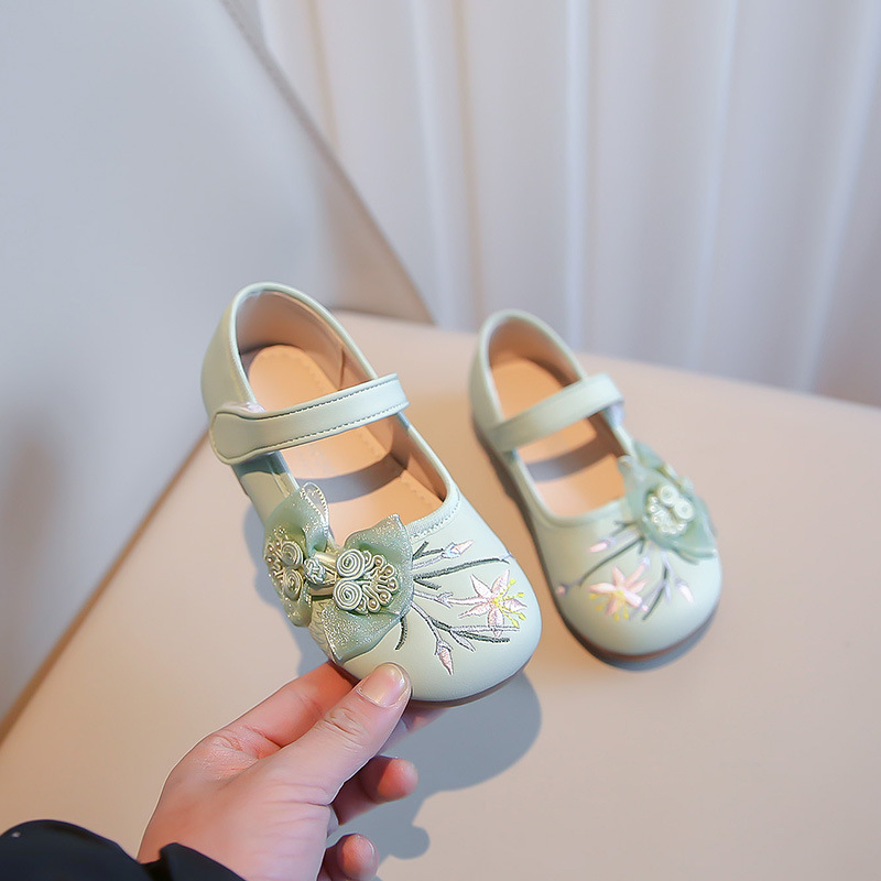 여자 신발 2024 봄 새로운 자수 Guofeng 빈티지 싱글 레이어 신발 여자 공주 신발 소프트 단독 어린이 가죽 신발