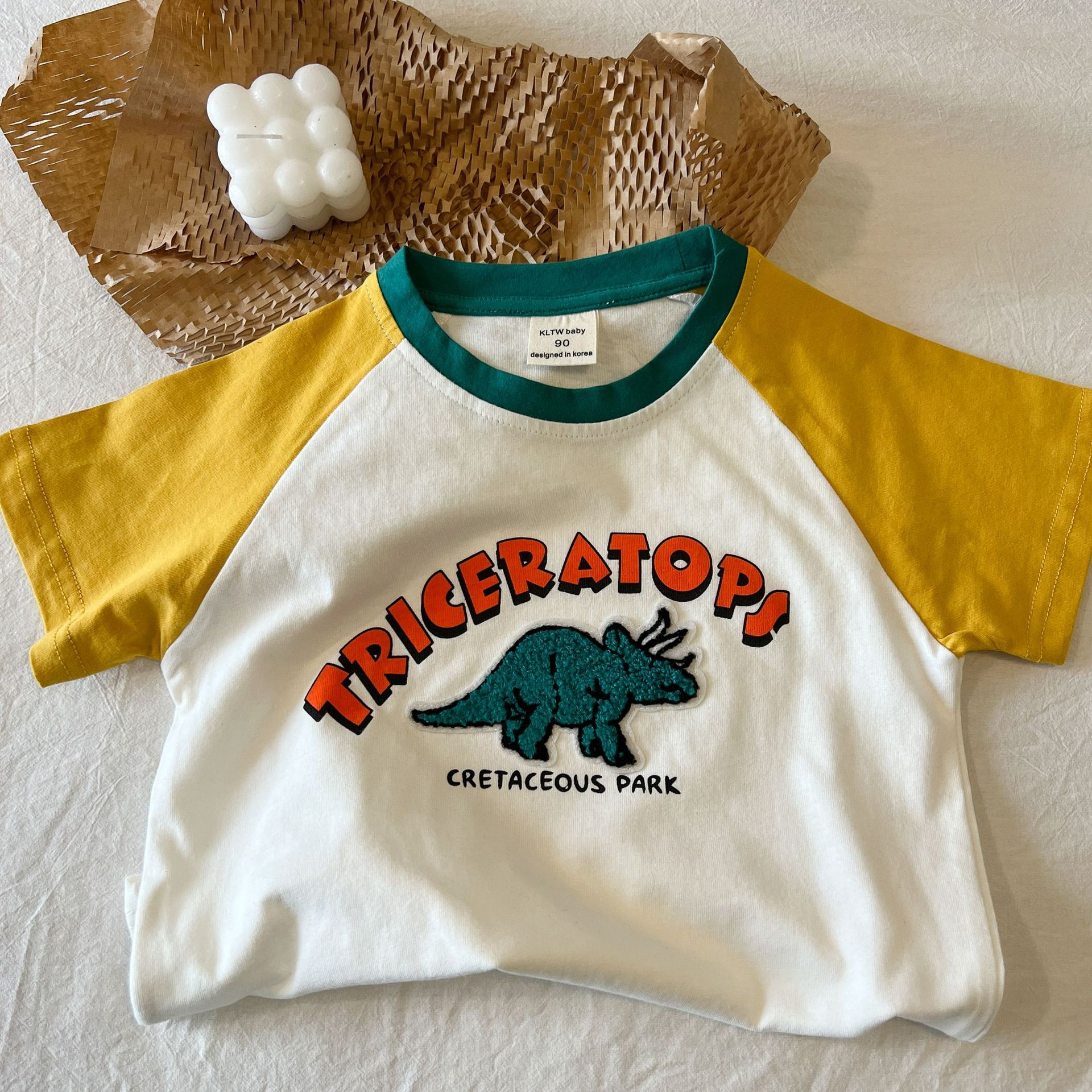 어린이 반팔 2024 여름 소년과 소녀 라운드 넥 탑 아기 만화 티셔츠 대비 컬러 티셔츠