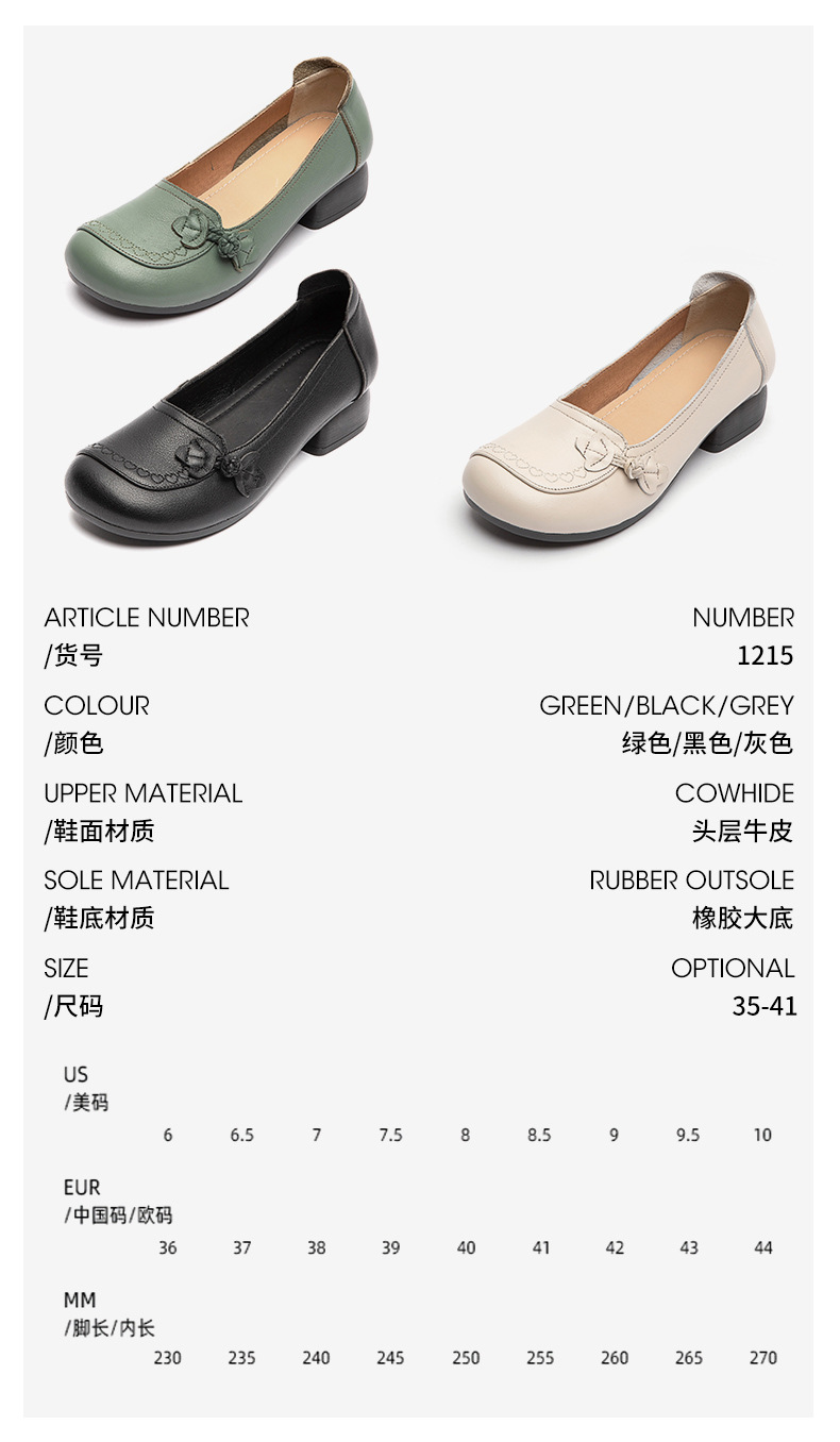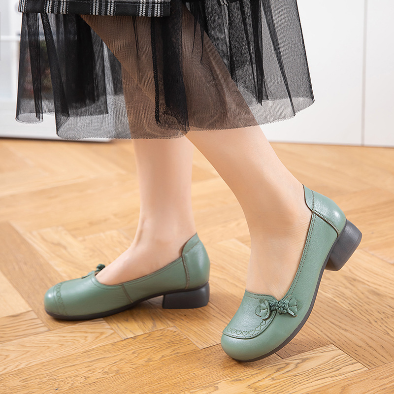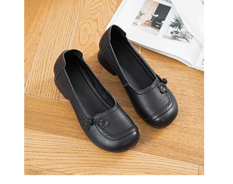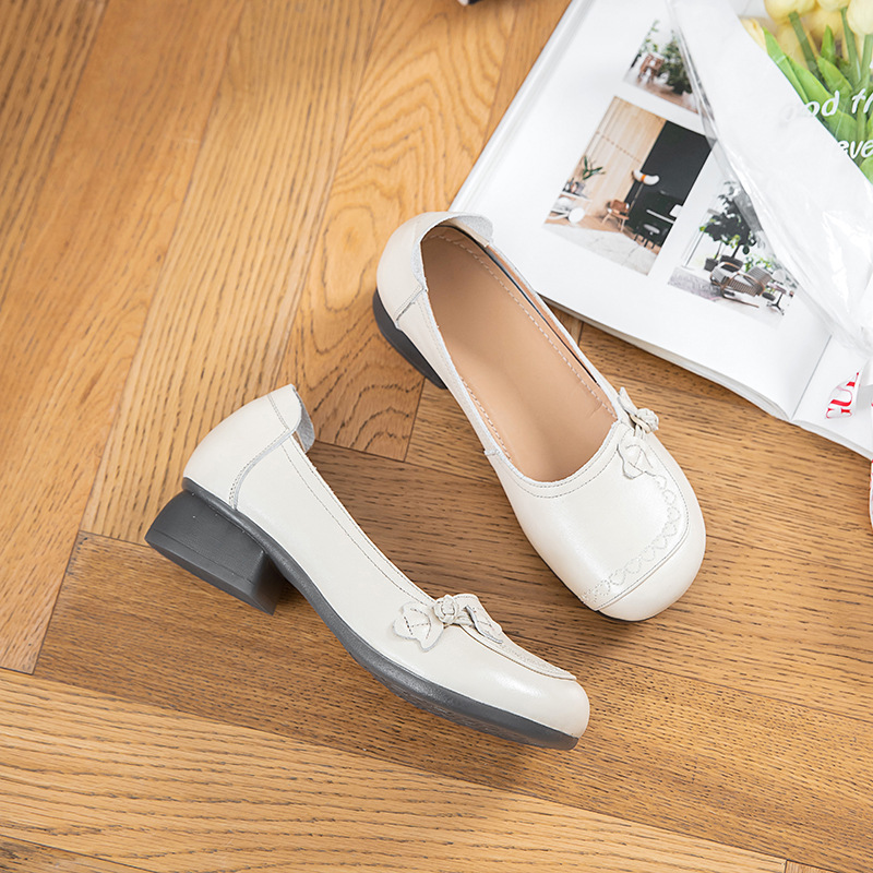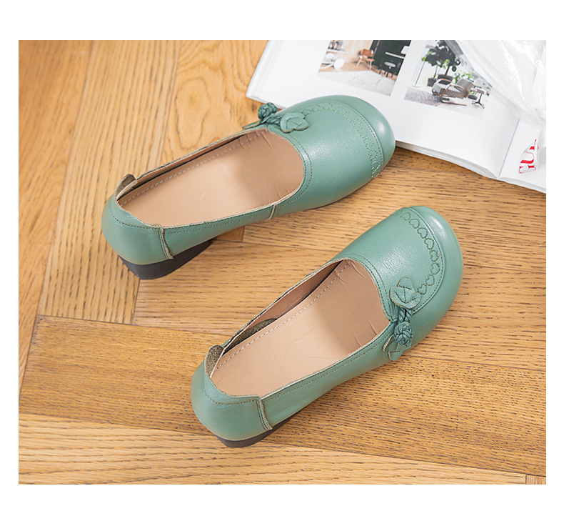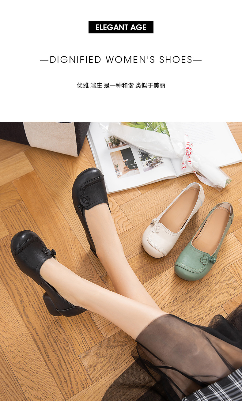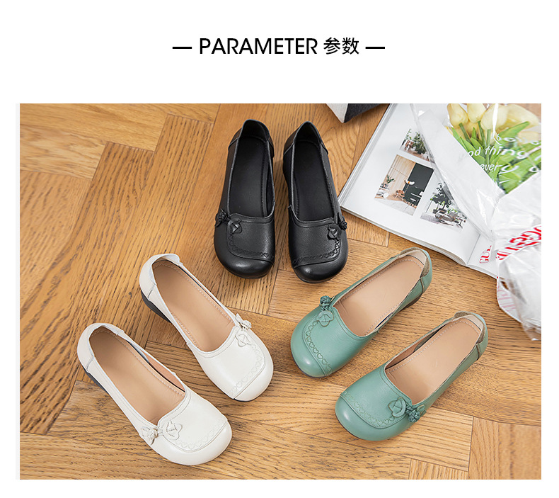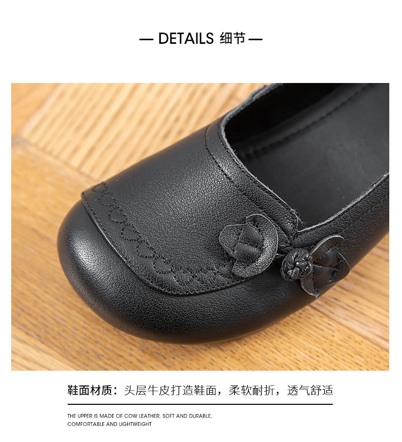 새로운 중국 스타일 탑 레이어 Cowhide Four Seasons Super Soft Bottom Shallow Mouth Ethnic Style 임산부 신발 비 슬립 싱글 레이어 신발 어머니 여성스토어 가기