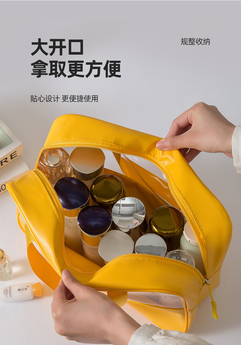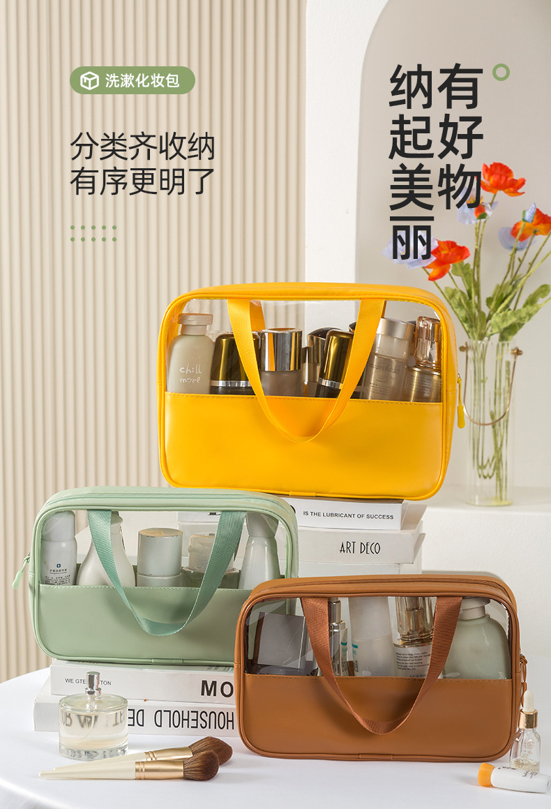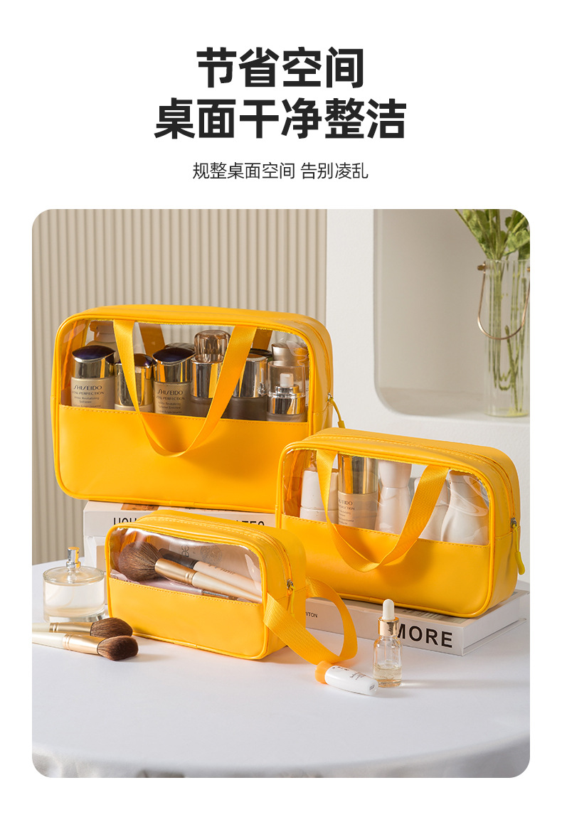 PU 휴대용 화장실 가방 핸드백 간단한 방수 대용량 투명 화장실 가방 여행 방수 메이크업 보관 가방
