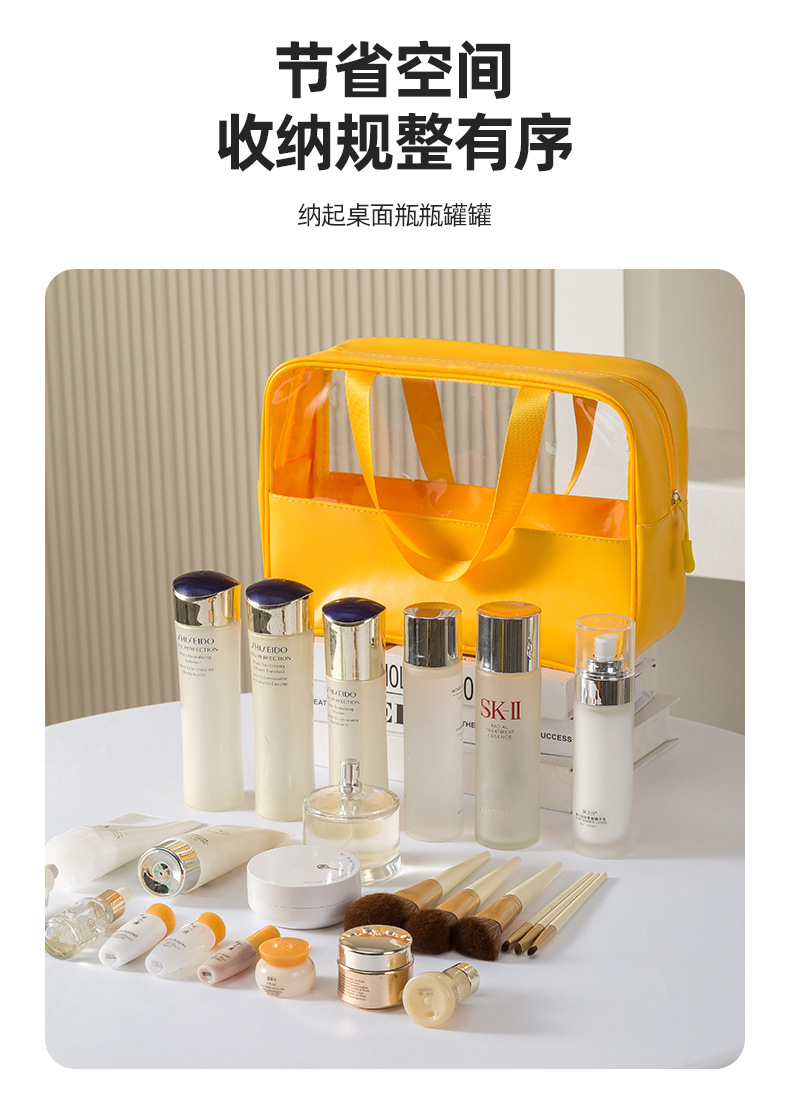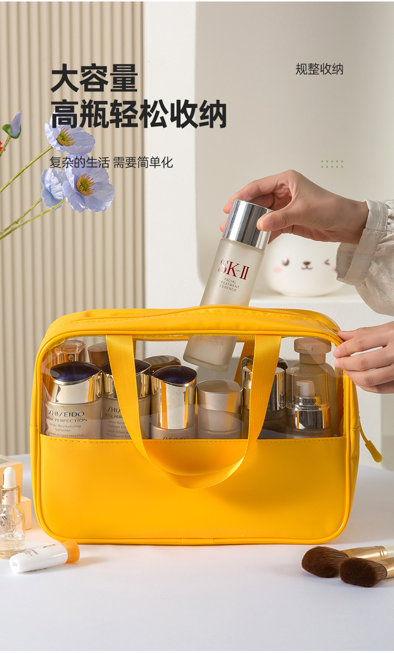 • 카레 컬러 대형 투명 화장실 가방 대용량