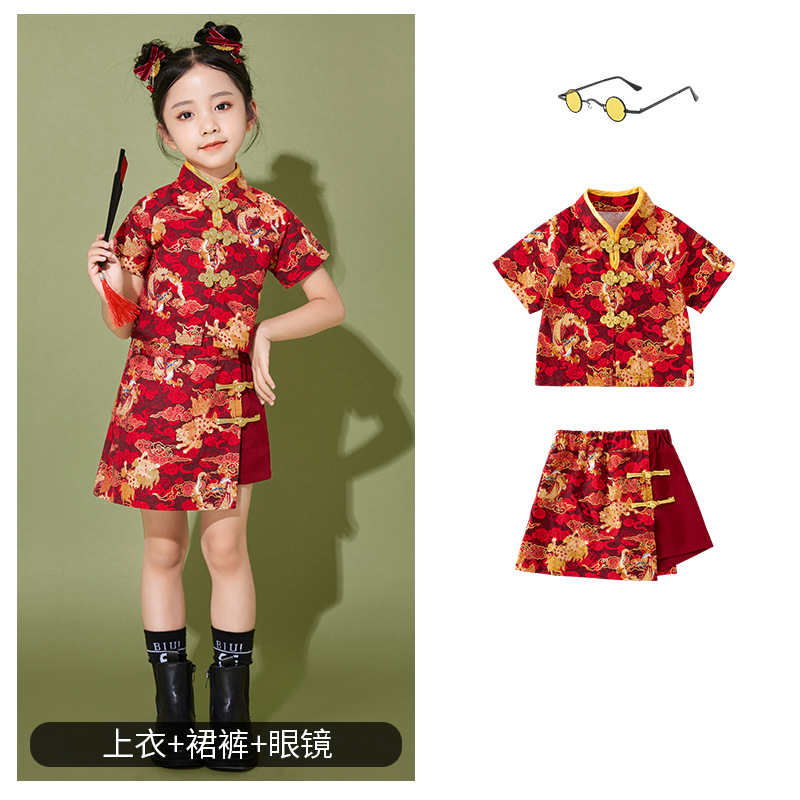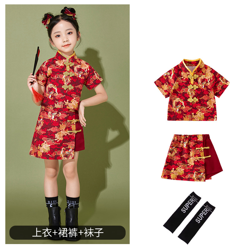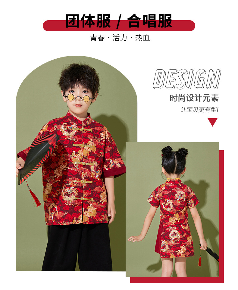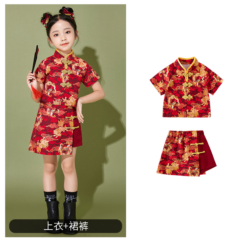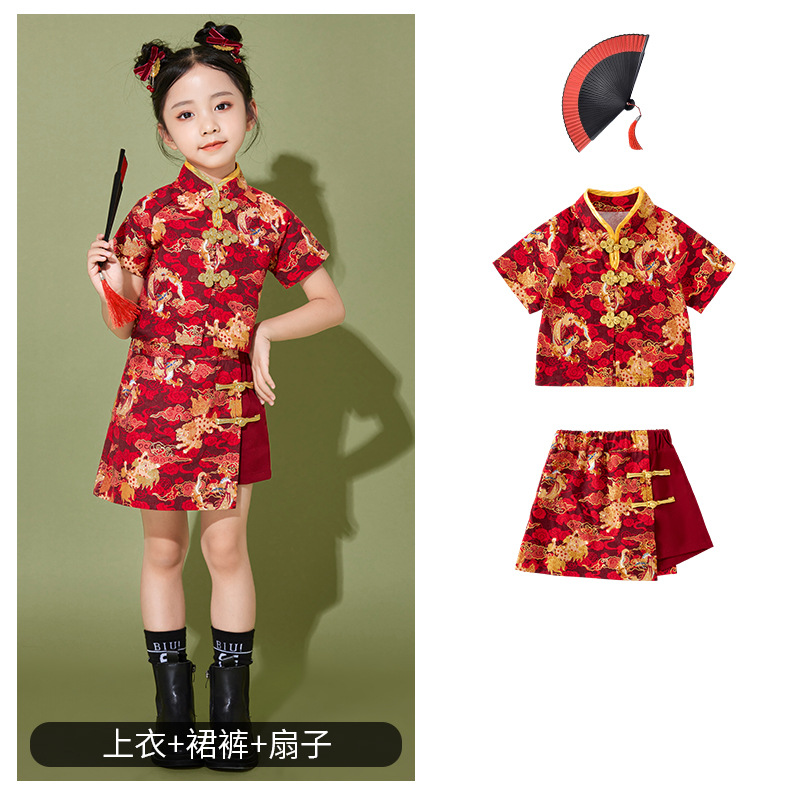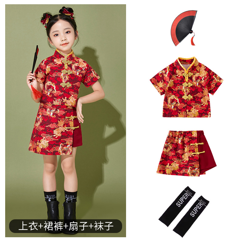 어린이 어린이 공연 의류 초등학교 게임 소년 한후 여자 청삼 스커트 전국 조수 치어 팀 공연 의류