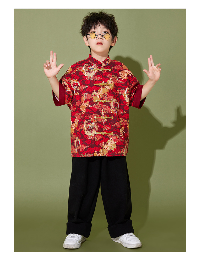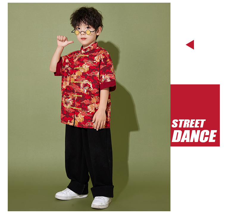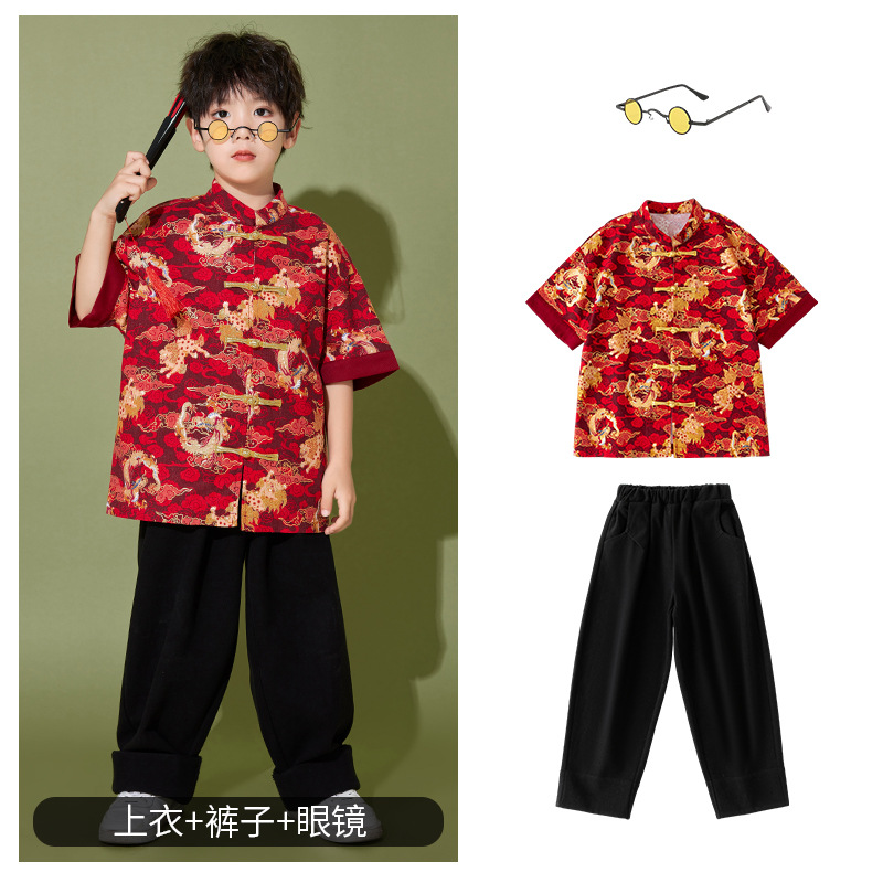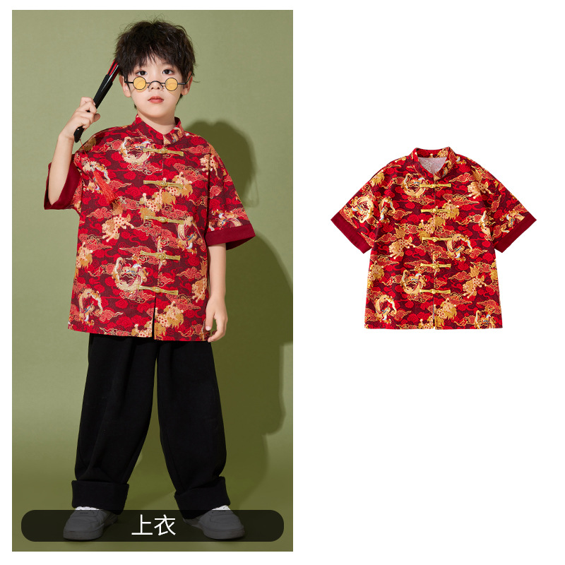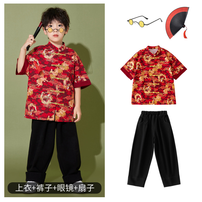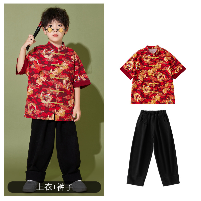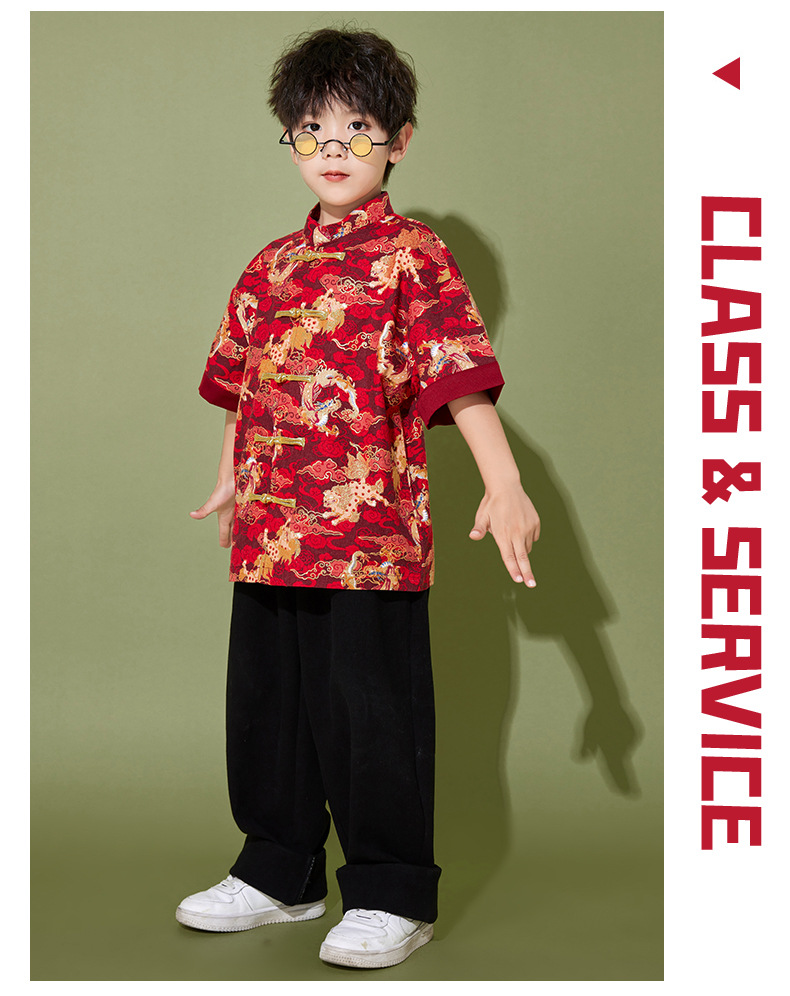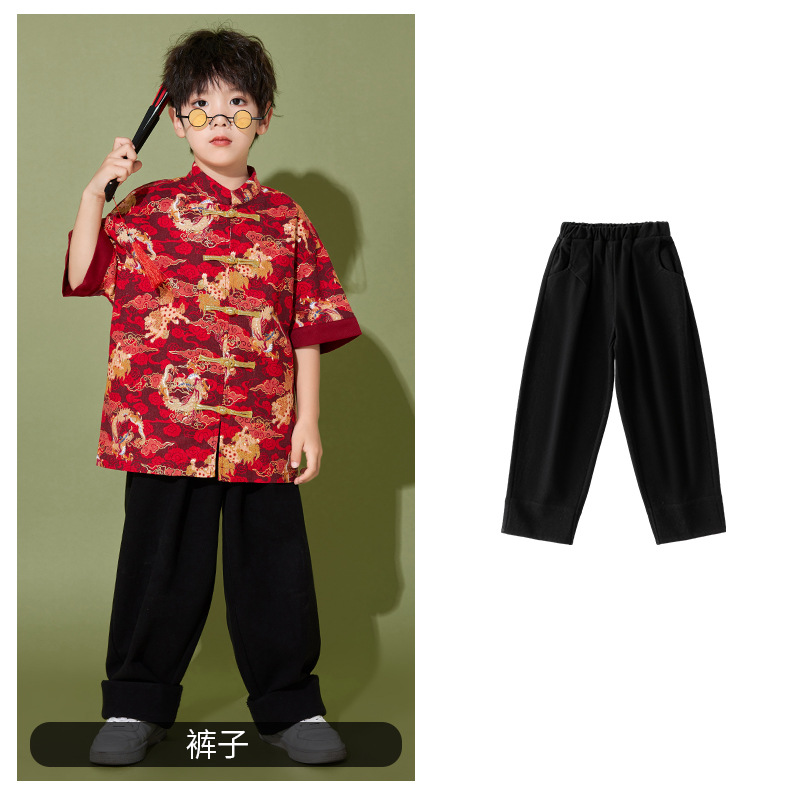 • H2013 남자 레드 기린 짧은 소매 H2037 블랙 바지 레드와 블랙 팬