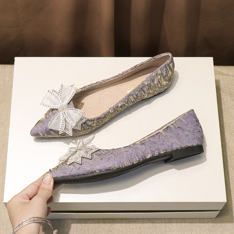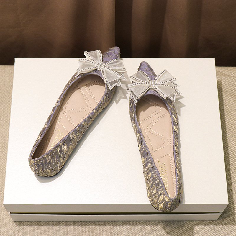 얕은 입 플랫 페어리 세트 작은 치마 2024 여름 새로운 스타일 싱글 신발 여성용 부드러운 스타일 콩 신발스토어 가기
