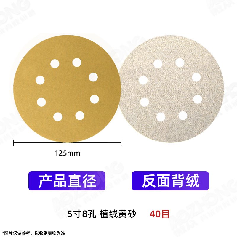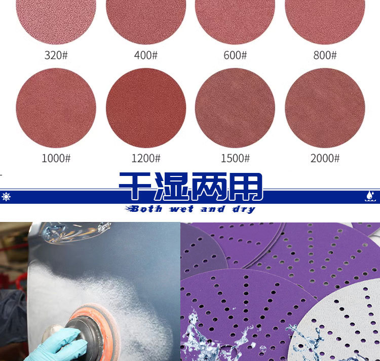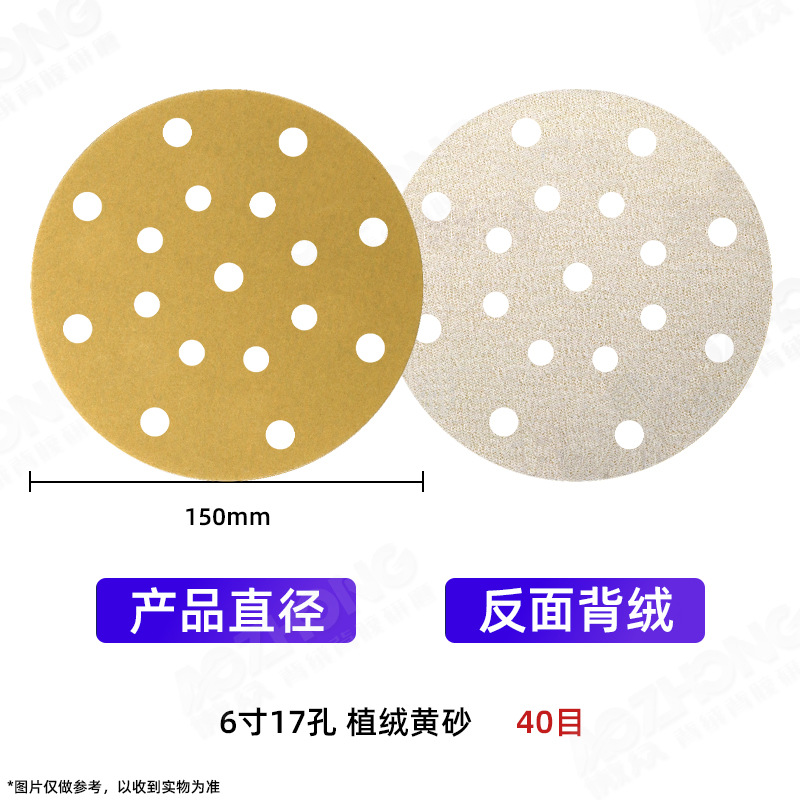 공장 도매 황색 사포 5인치 6홀, 6인치 17홀 자동차 도장, 목공, 금속 연마용 백색 벨벳 건식 사포