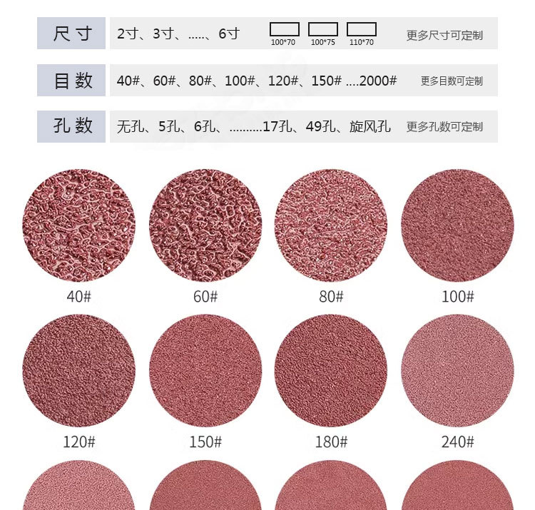 공장 도매 황색 사포 5인치 6홀, 6인치 17홀 자동차 도장, 목공, 금속 연마용 백색 벨벳 건식 사포스토어 가기