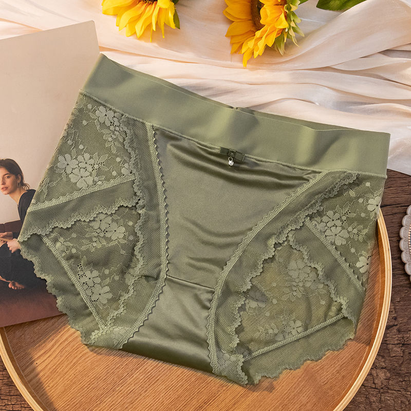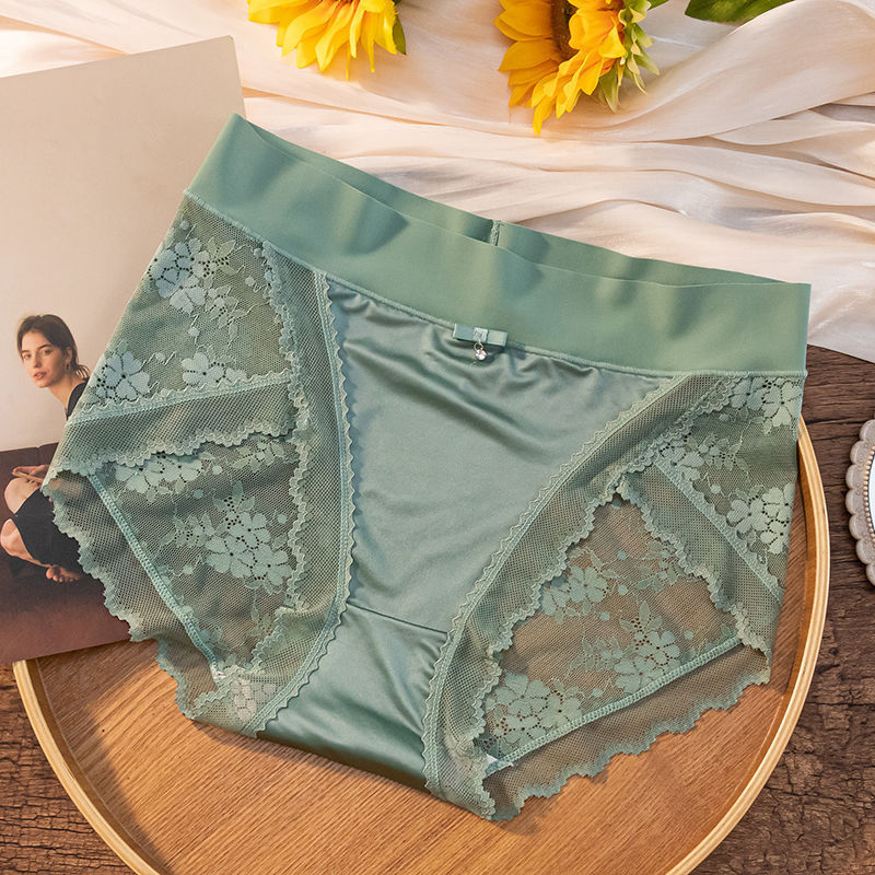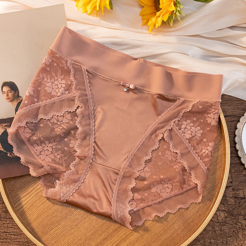 남성용 빨간 복부 팬티 여성 추적없는 높은 허리 레이스 엣지 플러스 사이즈 여성의 순수한 욕망 스타일 아이스 실크 트림 반바지