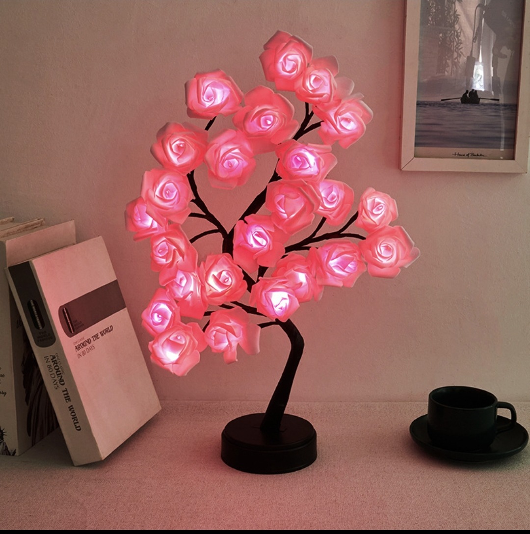 • 18등 핑크 장미나무 조명 USB 스위치 포함