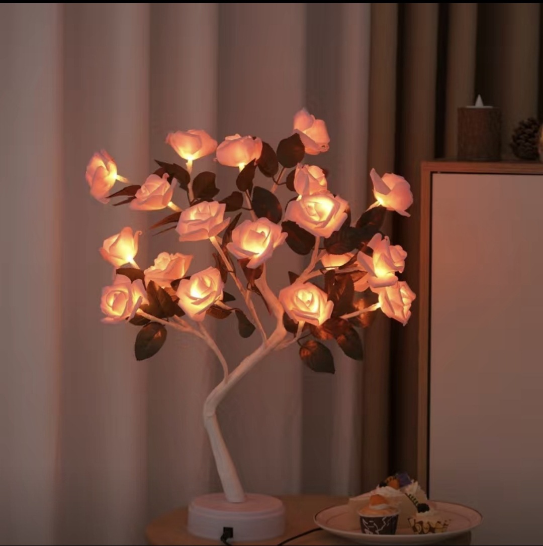 국경 간 폭발 조명 이동식 플라스틱 기본 USB 스위치 LED 시뮬레이션 장미 나무 조명 장식 야간 조명스토어 가기