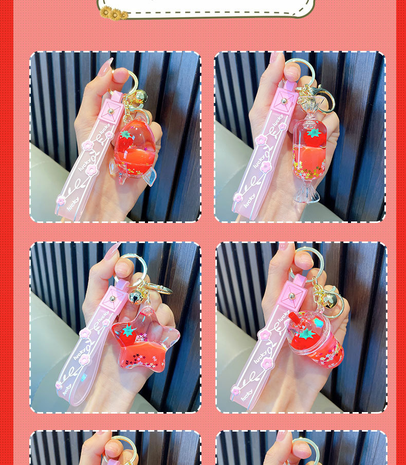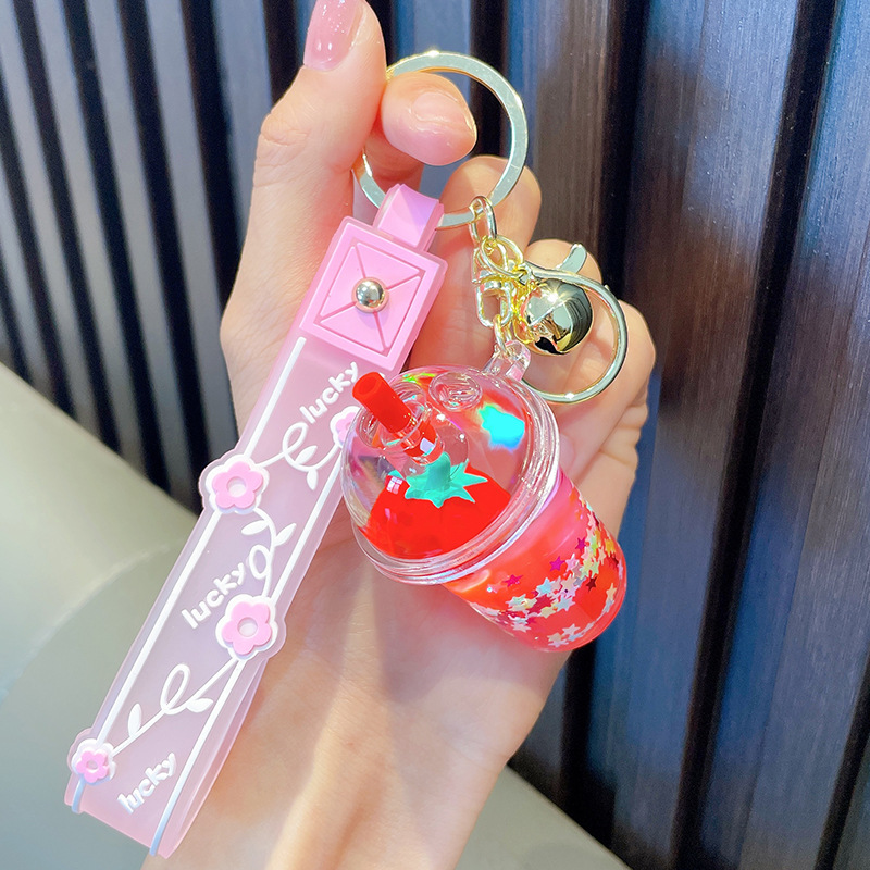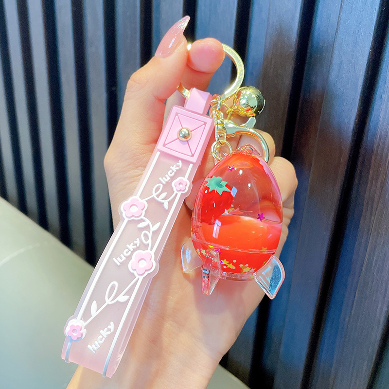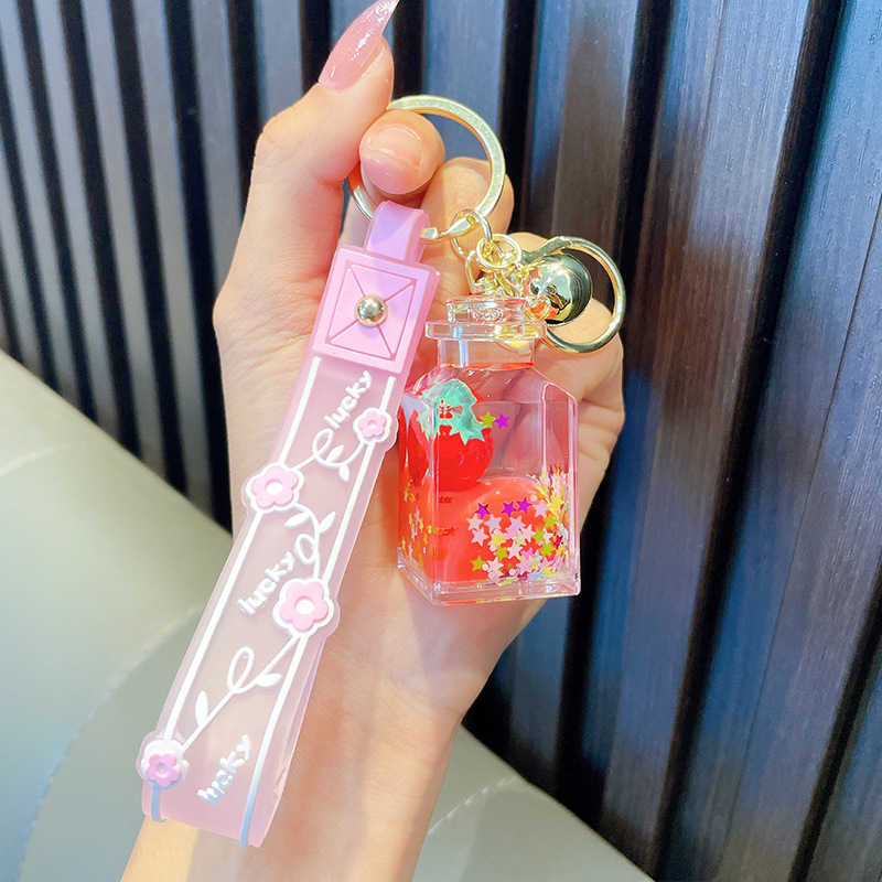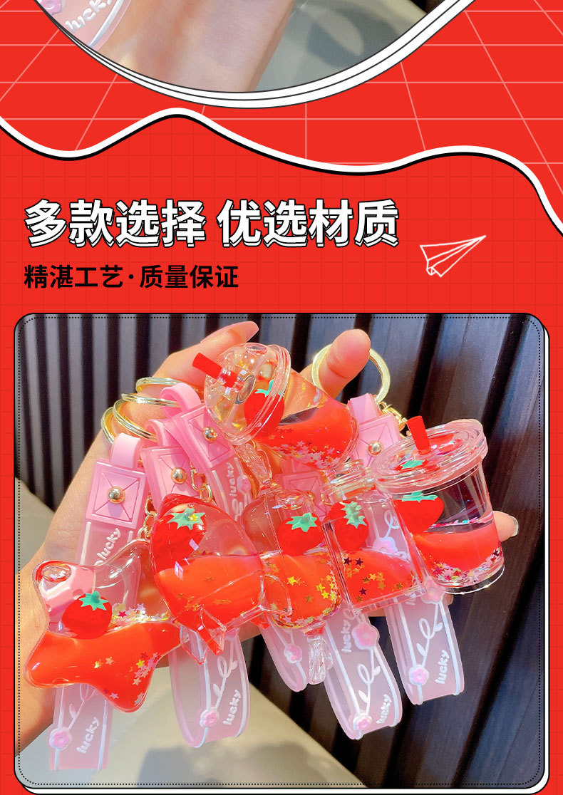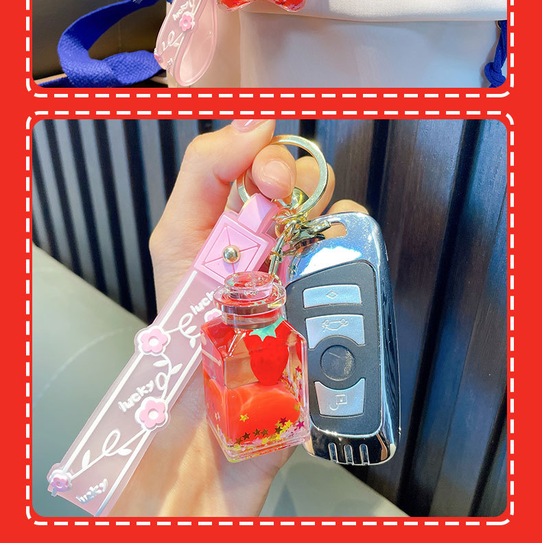 오일-플로팅 딸기 키 체인 액체 딸기 모래 병 키 체인 인터넷 축하 자동차 배낭 펜던트 선물스토어 가기