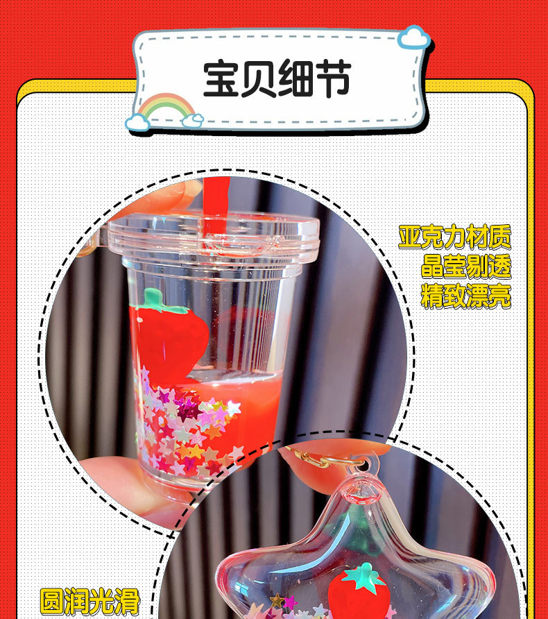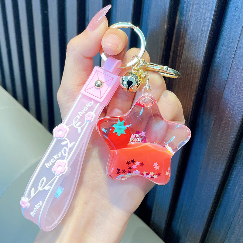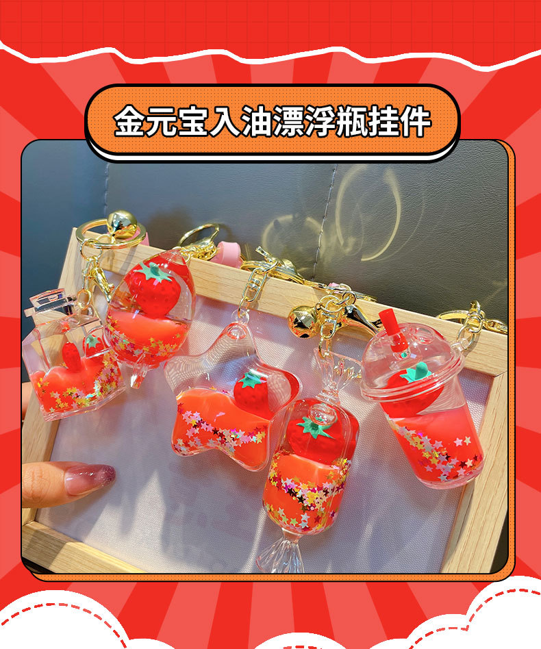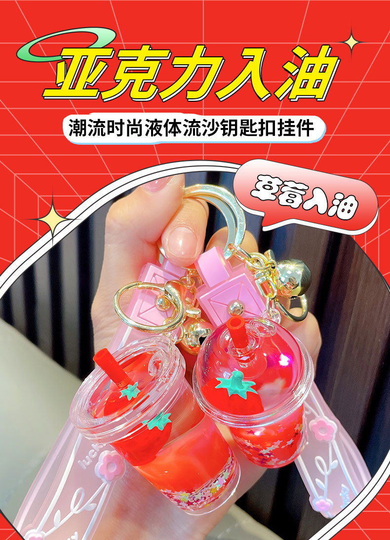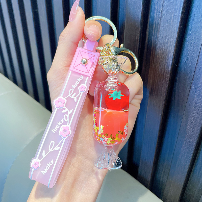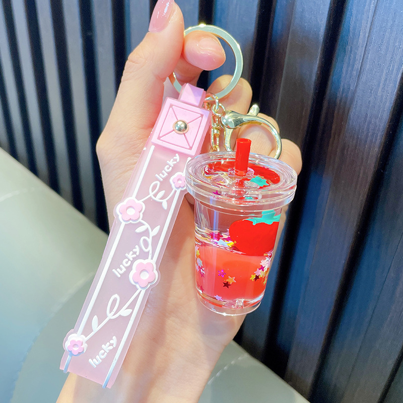 오일-플로팅 딸기 키 체인 액체 딸기 모래 병 키 체인 인터넷 축하 자동차 배낭 펜던트 선물스토어 가기
