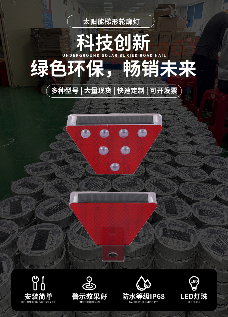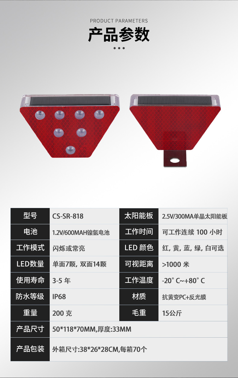 태양광 경계등 유도등 난간 사다리형 안개방지 경고등 LED 동기화 점멸 사다리형 도로못등