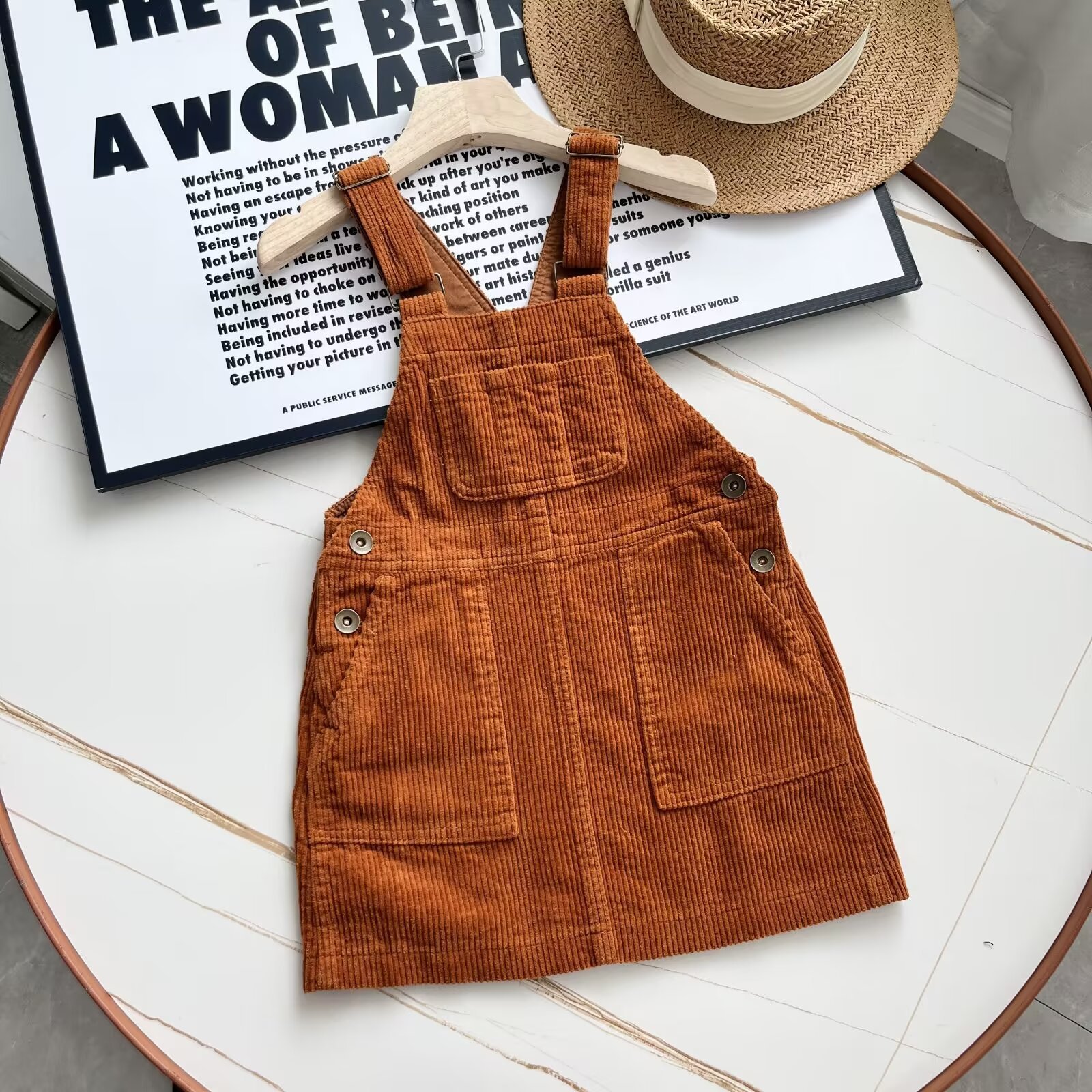 24 봄과 가을 새로운 소녀/소녀 바오마 어깨 끈 조절 가능한 가족 원피스 코듀로이 스트랩 스커트