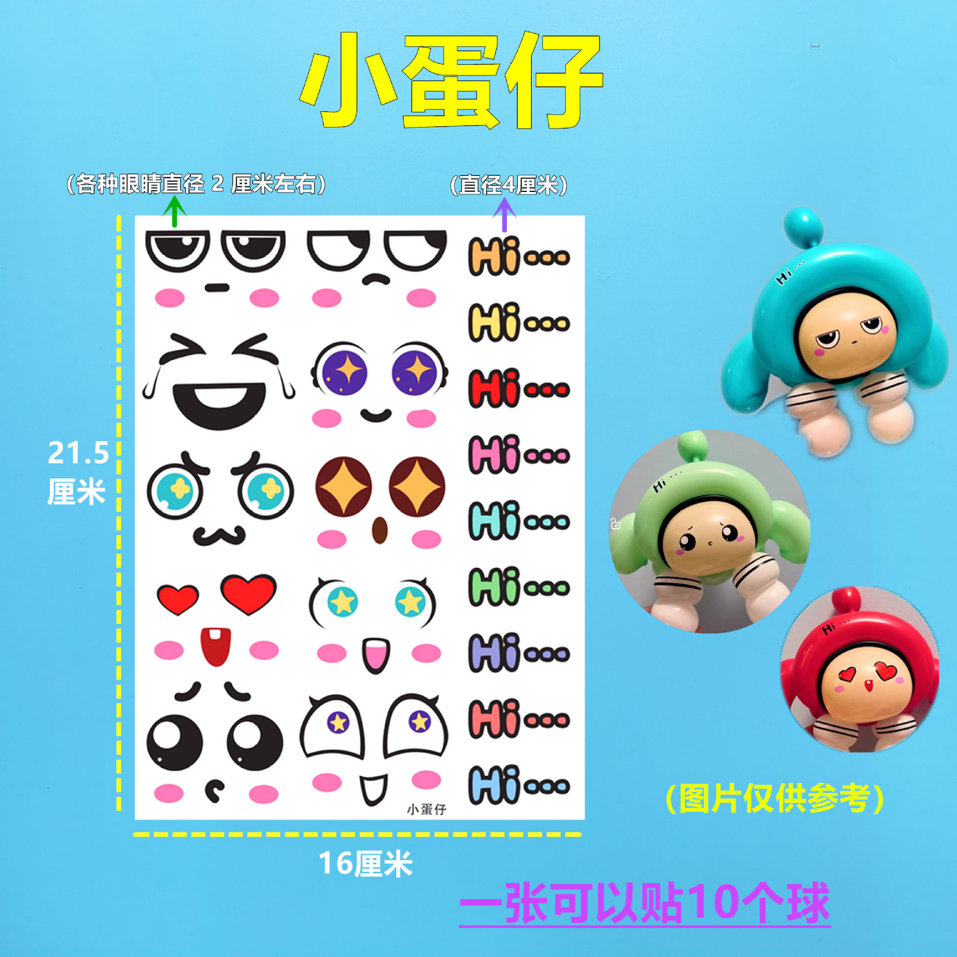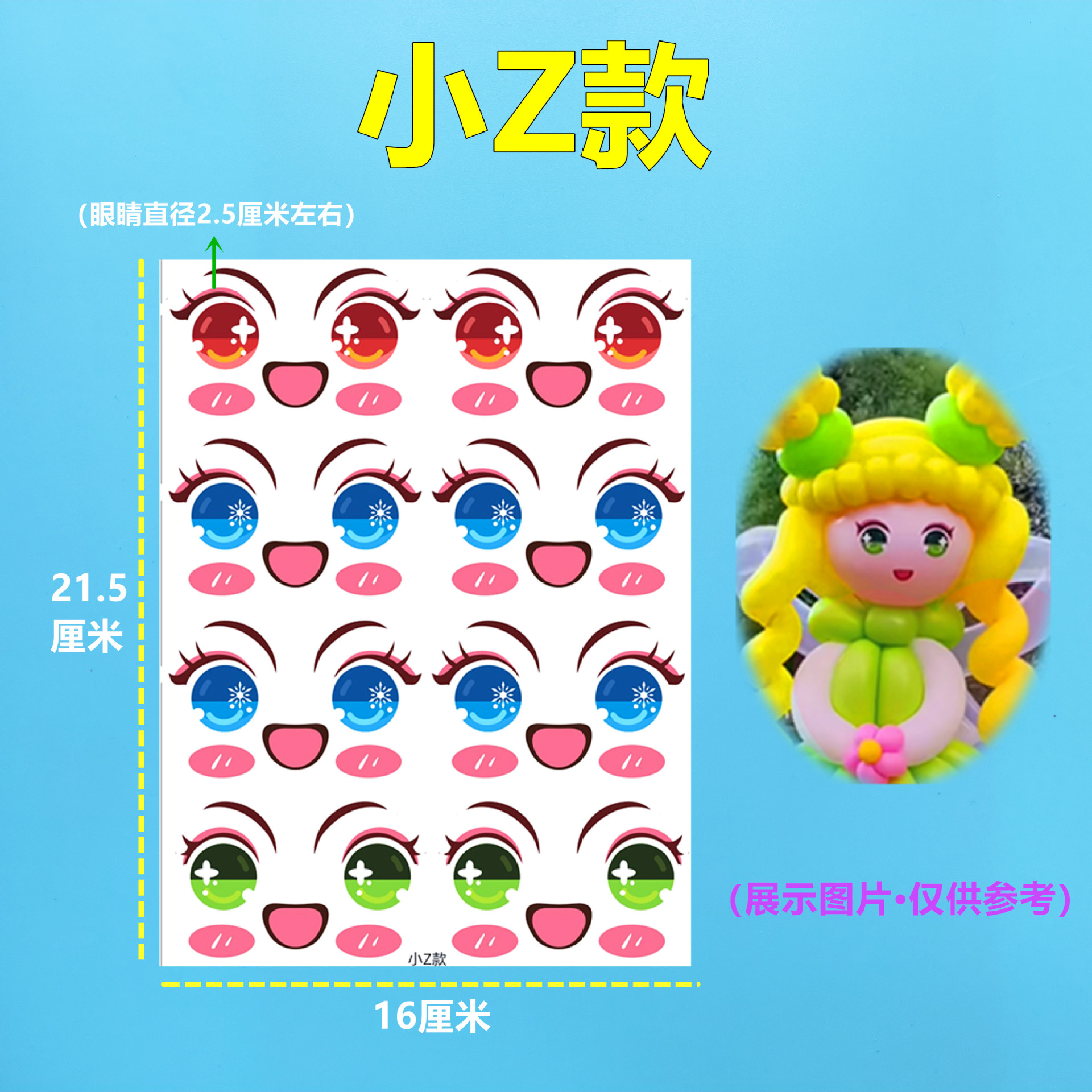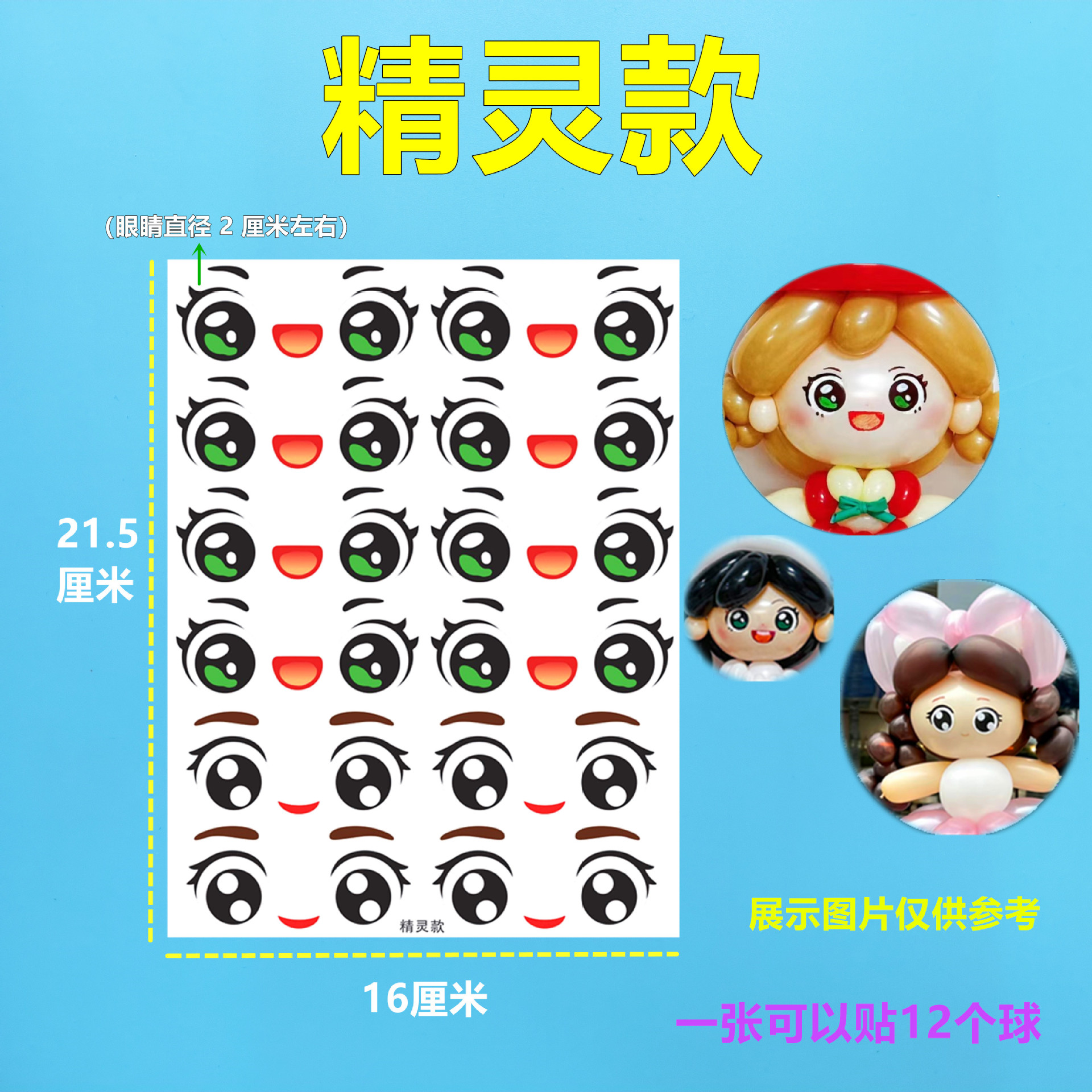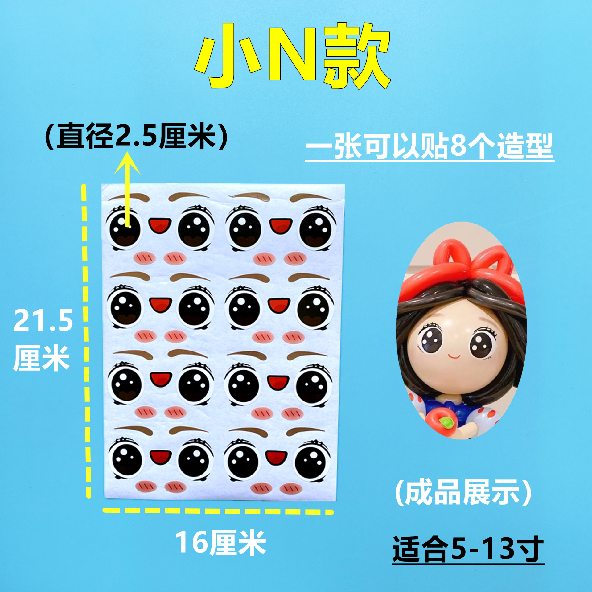 5-10寸气球波波球适合适用·不干胶材质·小号公主眼睛贴纸睫毛处较细·小心撕下·容易造成撕拉·介意慎拍·