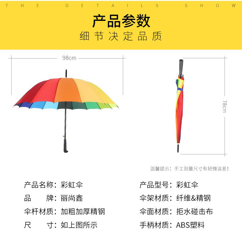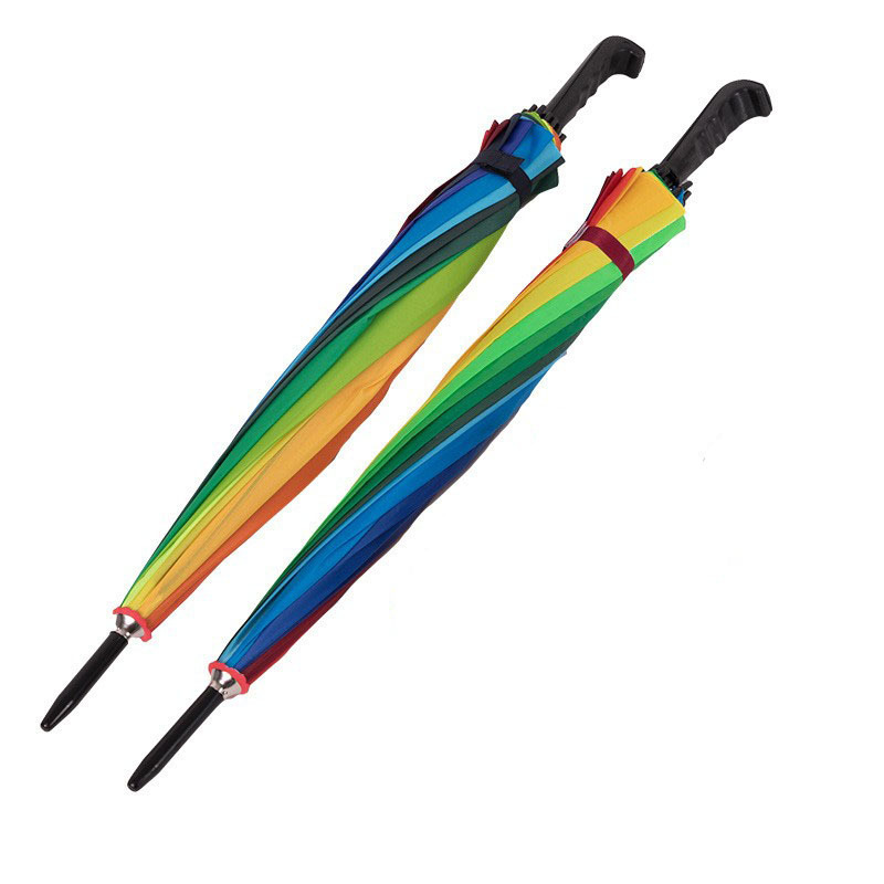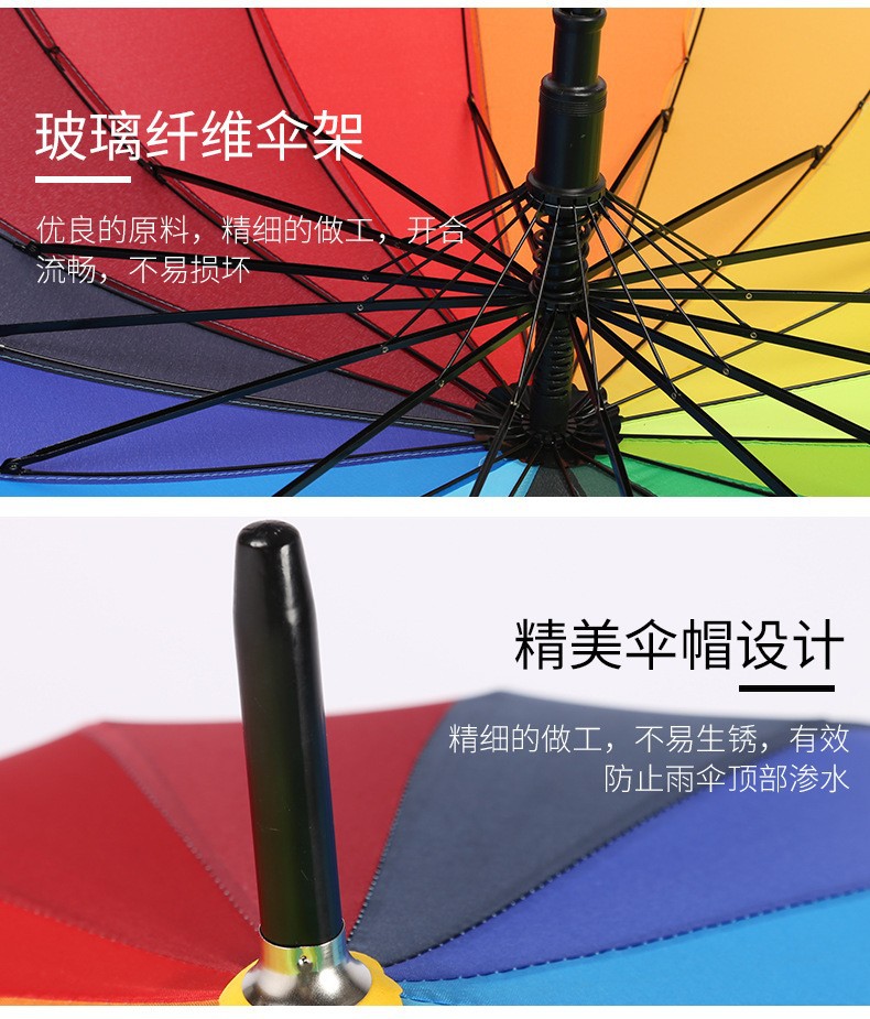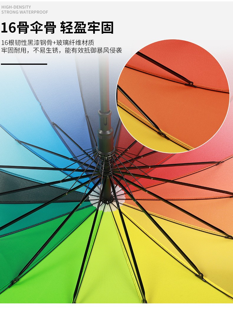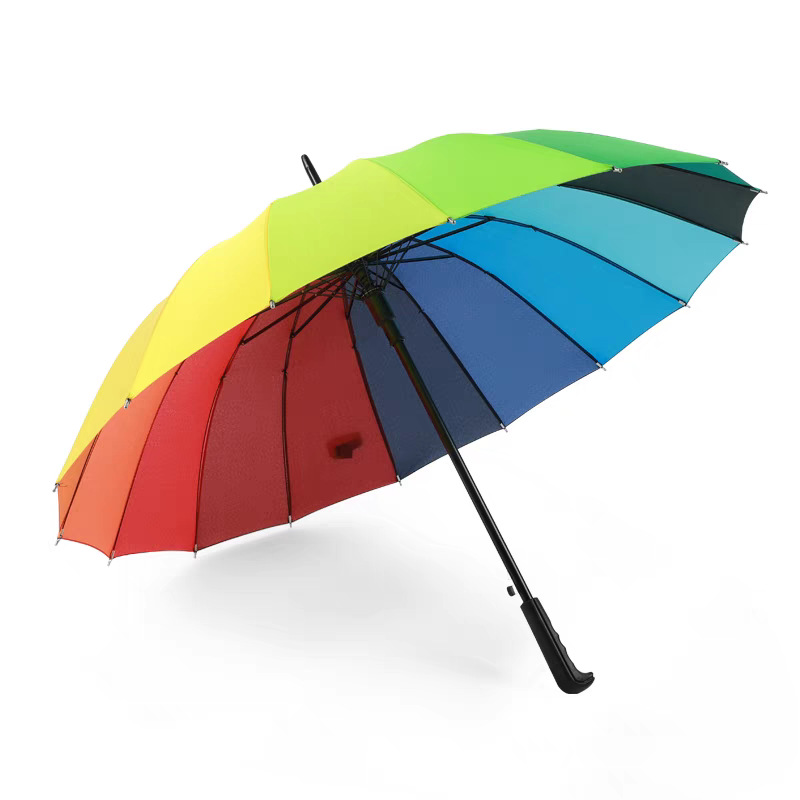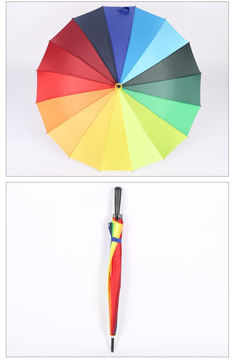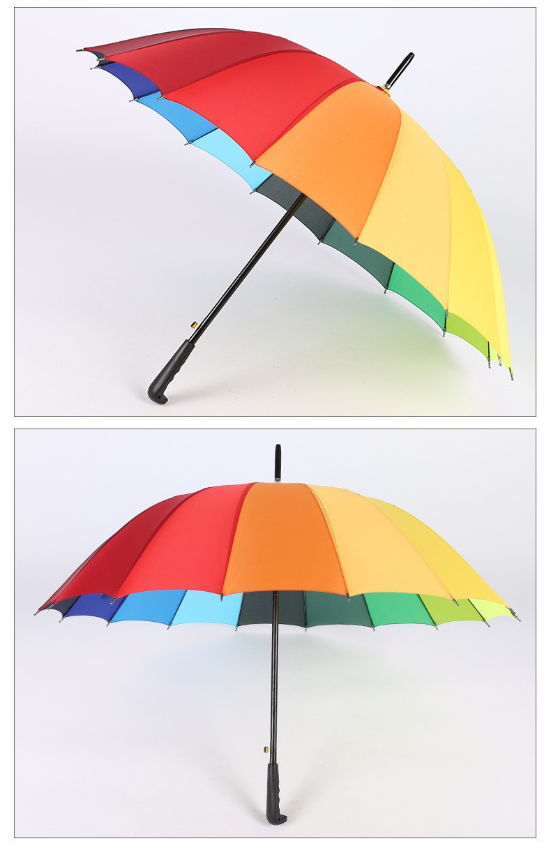 자동 16 뼈 스트레이트 로드 무지개 우산 야외 수동 컬렉션 레저 긴 핸들 우산 인쇄 로고 우산 도매
