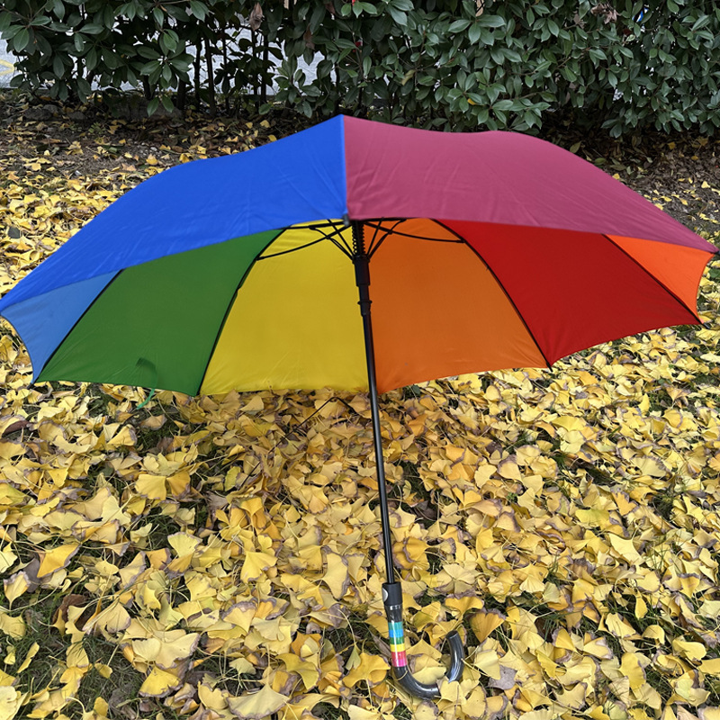 자동 16 뼈 스트레이트 로드 무지개 우산 야외 수동 컬렉션 레저 긴 핸들 우산 인쇄 로고 우산 도매스토어 가기